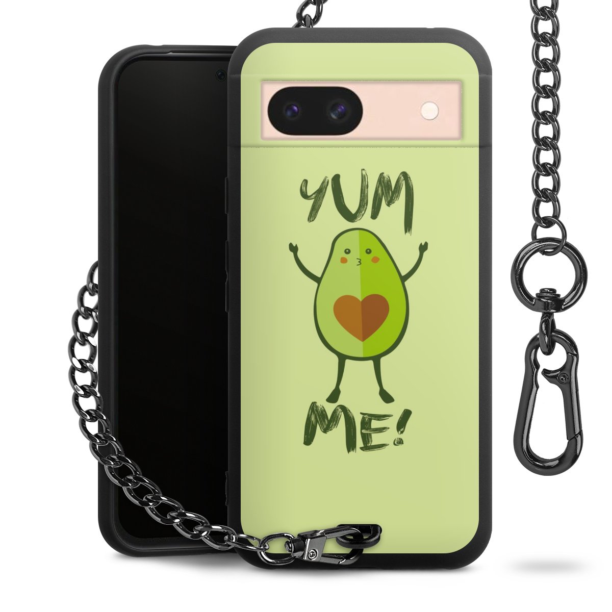 Die mattschwarze Silikon-Handyhülle besteht aus robustem TPU (thermoplastisches Polyurethan). Sie ist flexibel und schützt Dein Smartphone vor Stößen und Kratzern. Die Kette sowie der Karabinerhaken sind aus Metall in Gunmetal-Optik gefertigt. Für dieses Produkt kommen ausschließlich TÜV-geprüfte Materialien zum Einsatz.