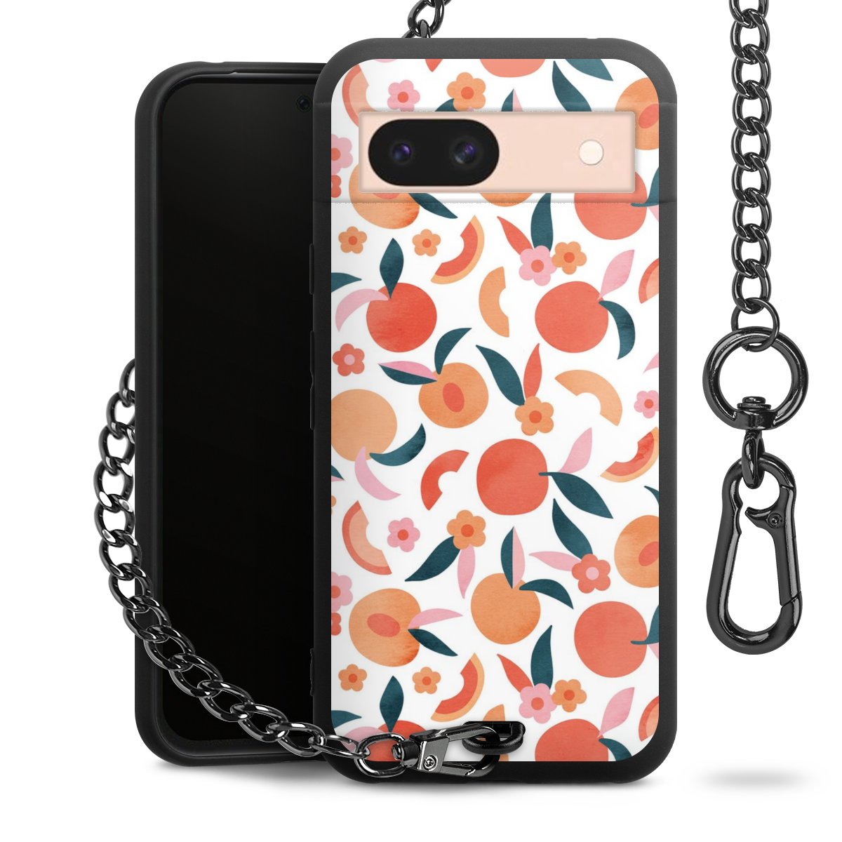 • Mattschwarze Handyhülle mit Metallkette