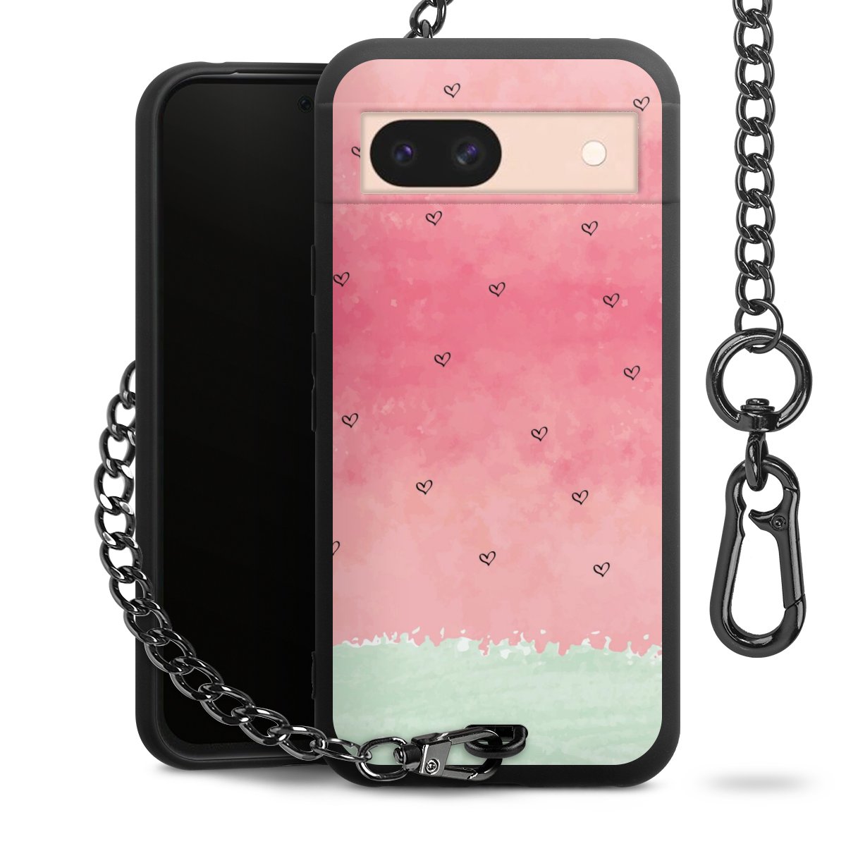 - Mattschwarze Handyhülle mit Metallkette