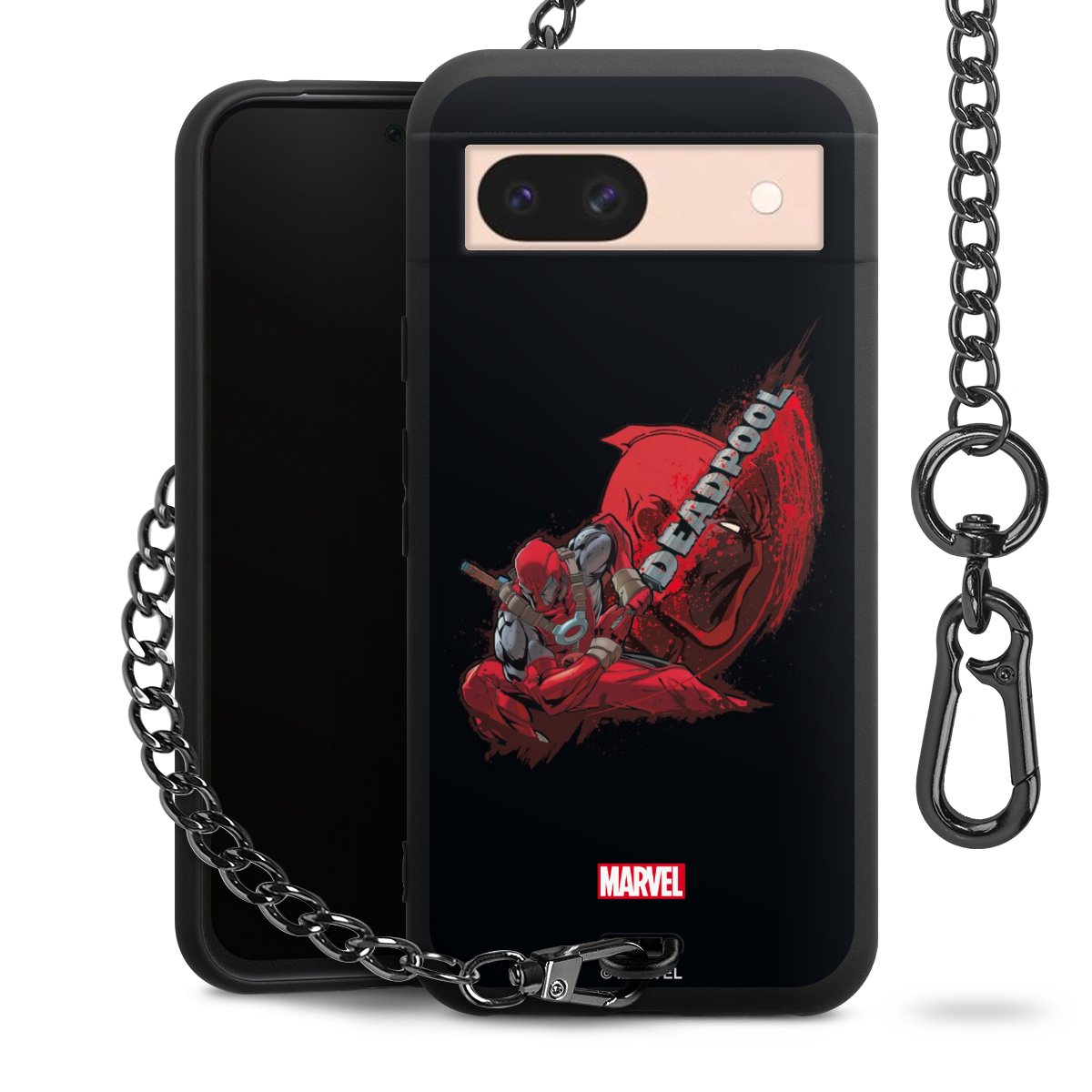 Die mattschwarze Silikon-Handyhülle besteht aus robustem TPU (thermoplastisches Polyurethan). Sie ist flexibel und schützt Dein Smartphone vor Stößen und Kratzern. Die Kette sowie der Karabinerhaken sind aus Metall in Gunmetal-Optik gefertigt. Für dieses Produkt kommen ausschließlich TÜV-geprüfte Materialien zum Einsatz.