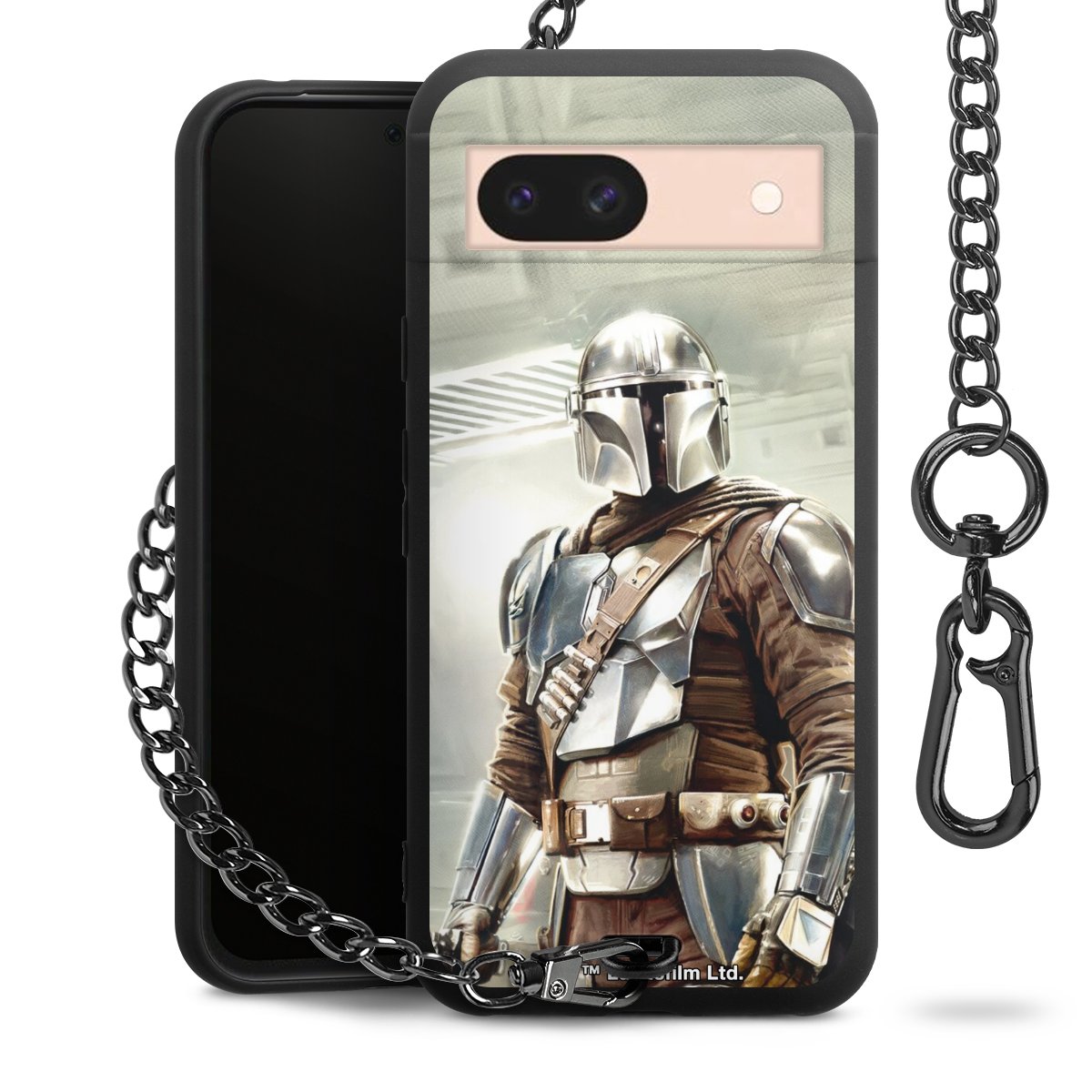 Die mattschwarze Silikon-Handyhülle besteht aus robustem TPU (thermoplastisches Polyurethan). Sie ist flexibel und schützt Dein Smartphone vor Stößen und Kratzern. Die Kette sowie der Karabinerhaken sind aus Metall in Gunmetal-Optik gefertigt. Für dieses Produkt kommen ausschließlich TÜV-geprüfte Materialien zum Einsatz.