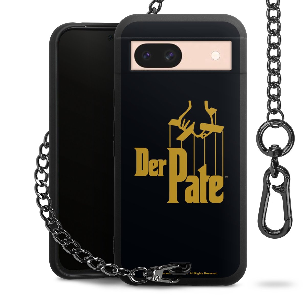 Die mattschwarze Silikon-Handyhülle besteht aus robustem TPU (thermoplastisches Polyurethan). Sie ist flexibel und schützt Dein Smartphone vor Stößen und Kratzern. Die Kette sowie der Karabinerhaken sind aus Metall in Gunmetal-Optik gefertigt. Für dieses Produkt kommen ausschließlich TÜV-geprüfte Materialien zum Einsatz.