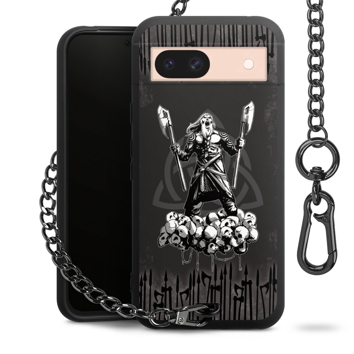 Die mattschwarze Silikon-Handyhülle besteht aus robustem TPU (thermoplastisches Polyurethan). Sie ist flexibel und schützt Dein Smartphone vor Stößen und Kratzern. Die Kette sowie der Karabinerhaken sind aus Metall in Gunmetal-Optik gefertigt. Für dieses Produkt kommen ausschließlich TÜV-geprüfte Materialien zum Einsatz.