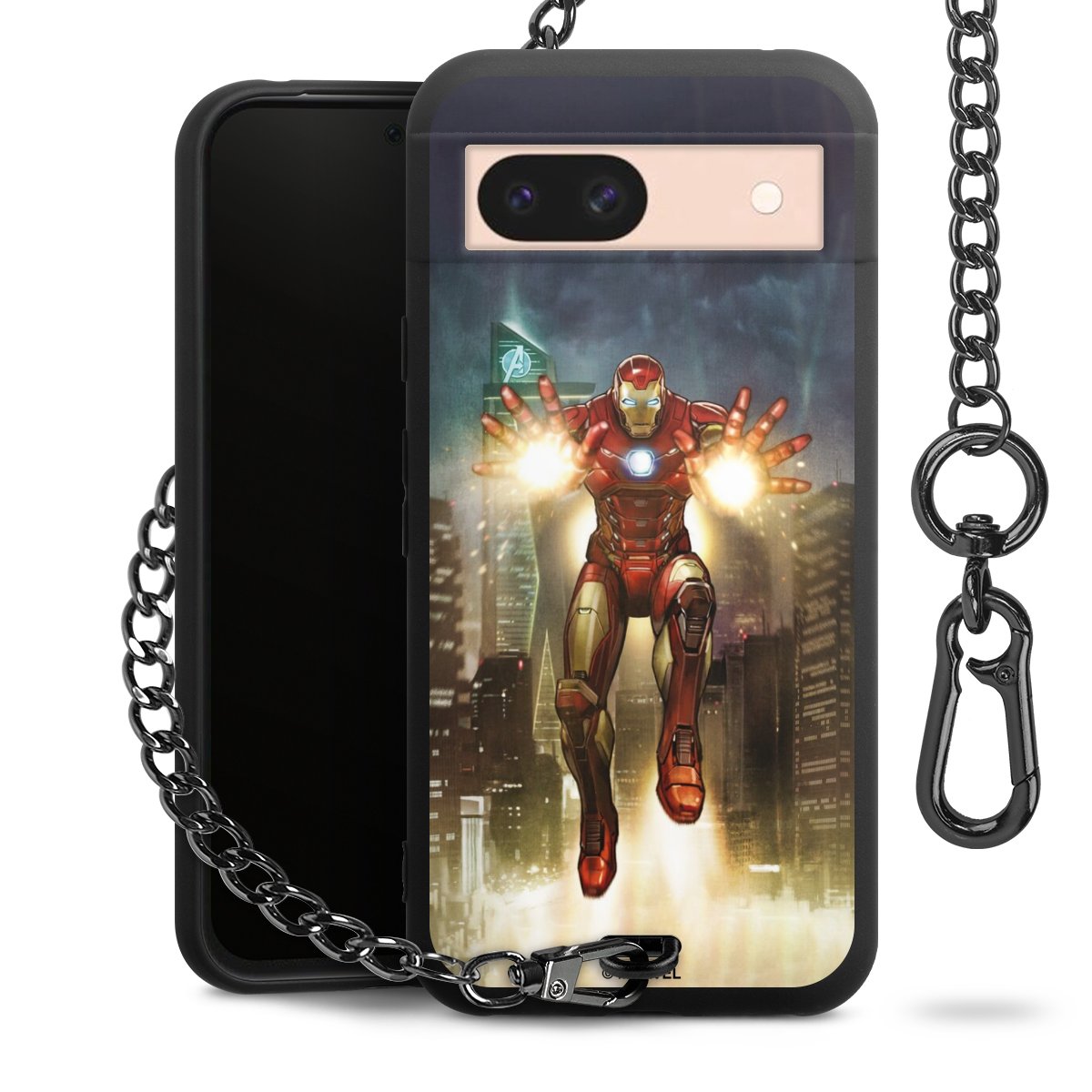 • Mattschwarze Handyhülle mit Metallkette