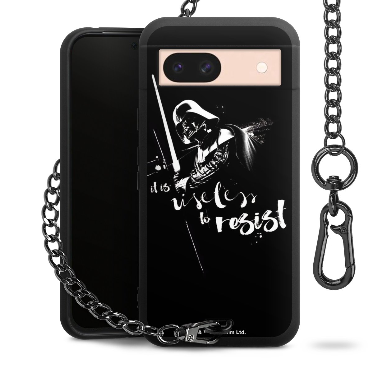 Die mattschwarze Silikon-Handyhülle besteht aus robustem TPU (thermoplastisches Polyurethan). Sie ist flexibel und schützt Dein Smartphone vor Stößen und Kratzern. Die Kette sowie der Karabinerhaken sind aus Metall in Gunmetal-Optik gefertigt. Für dieses Produkt kommen ausschließlich TÜV-geprüfte Materialien zum Einsatz.