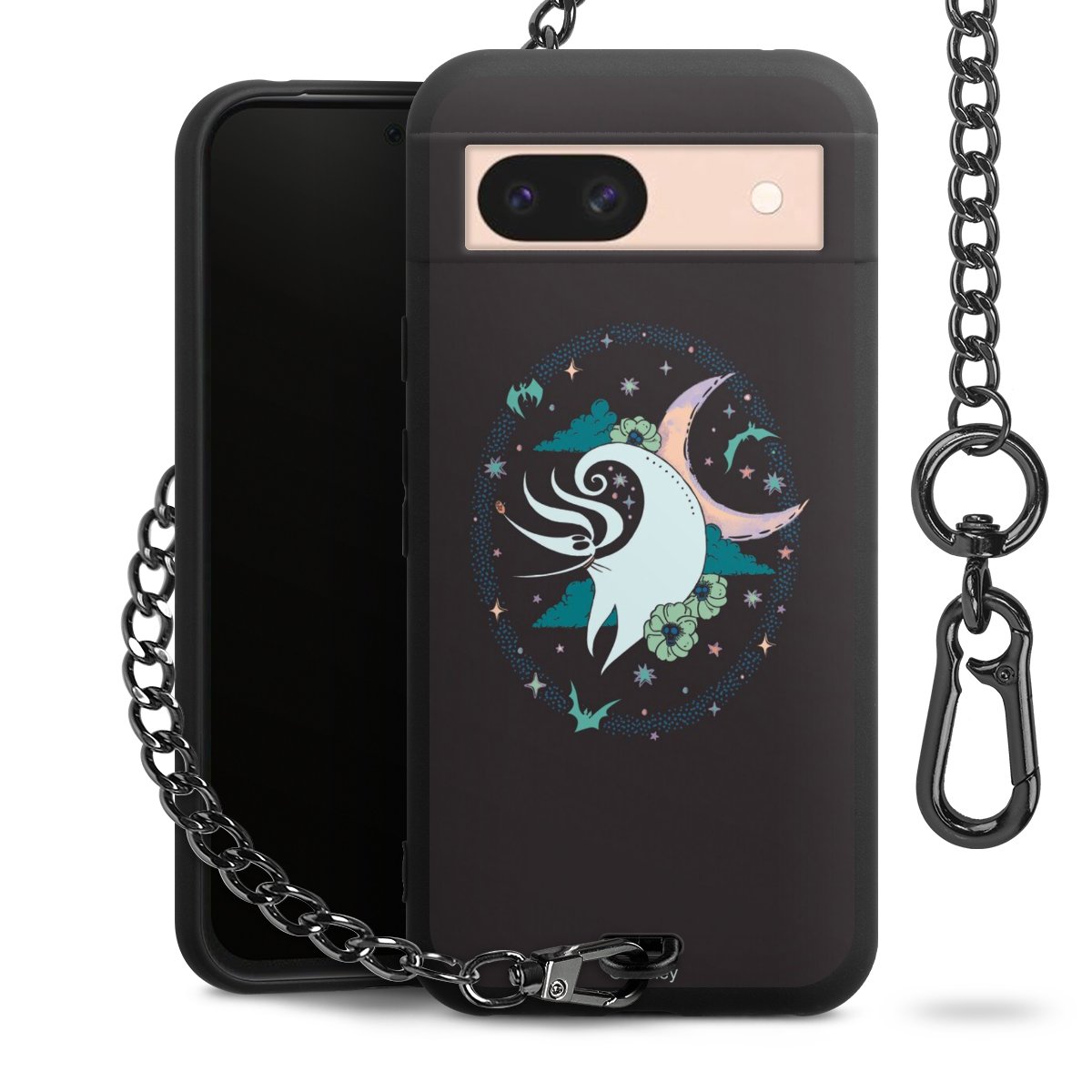 • Mattschwarze Handyhülle mit Metallkette