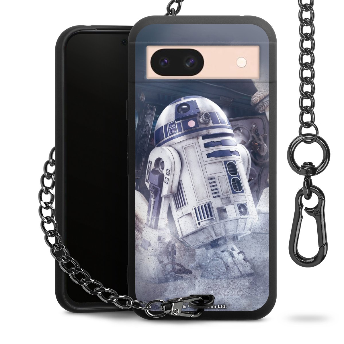 Die mattschwarze Silikon-Handyhülle besteht aus robustem TPU (thermoplastisches Polyurethan). Sie ist flexibel und schützt Dein Smartphone vor Stößen und Kratzern. Die Kette sowie der Karabinerhaken sind aus Metall in Gunmetal-Optik gefertigt. Für dieses Produkt kommen ausschließlich TÜV-geprüfte Materialien zum Einsatz.