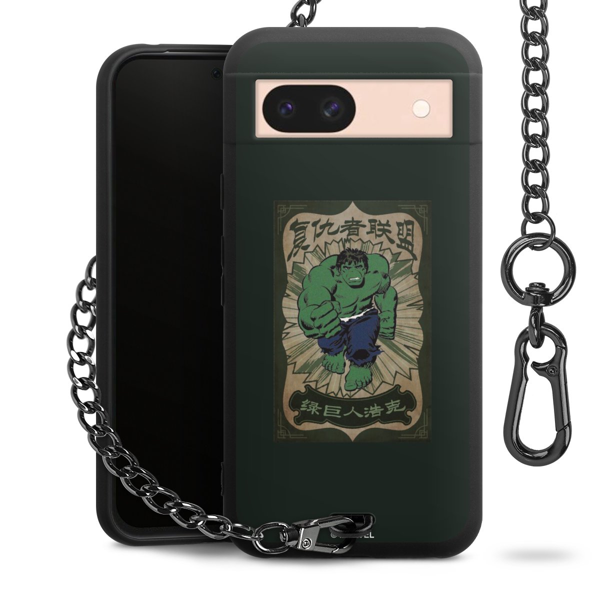Die mattschwarze Silikon-Handyhülle besteht aus robustem TPU (thermoplastisches Polyurethan). Sie ist flexibel und schützt Dein Smartphone vor Stößen und Kratzern. Die Kette sowie der Karabinerhaken sind aus Metall in Gunmetal-Optik gefertigt. Für dieses Produkt kommen ausschließlich TÜV-geprüfte Materialien zum Einsatz.