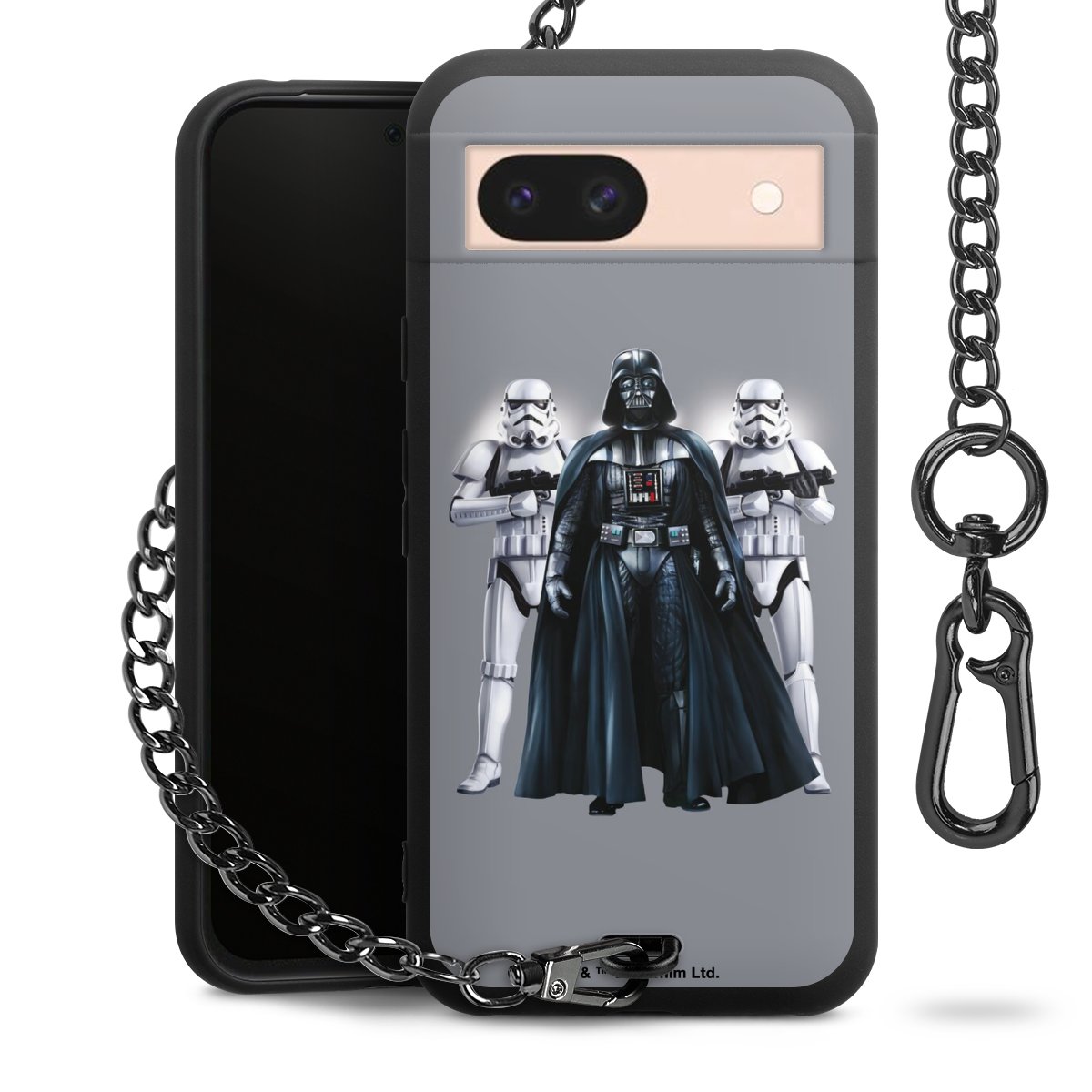 Die mattschwarze Silikon-Handyhülle besteht aus robustem TPU (thermoplastisches Polyurethan). Sie ist flexibel und schützt Dein Smartphone vor Stößen und Kratzern. Die Kette sowie der Karabinerhaken sind aus Metall in Gunmetal-Optik gefertigt. Für dieses Produkt kommen ausschließlich TÜV-geprüfte Materialien zum Einsatz.