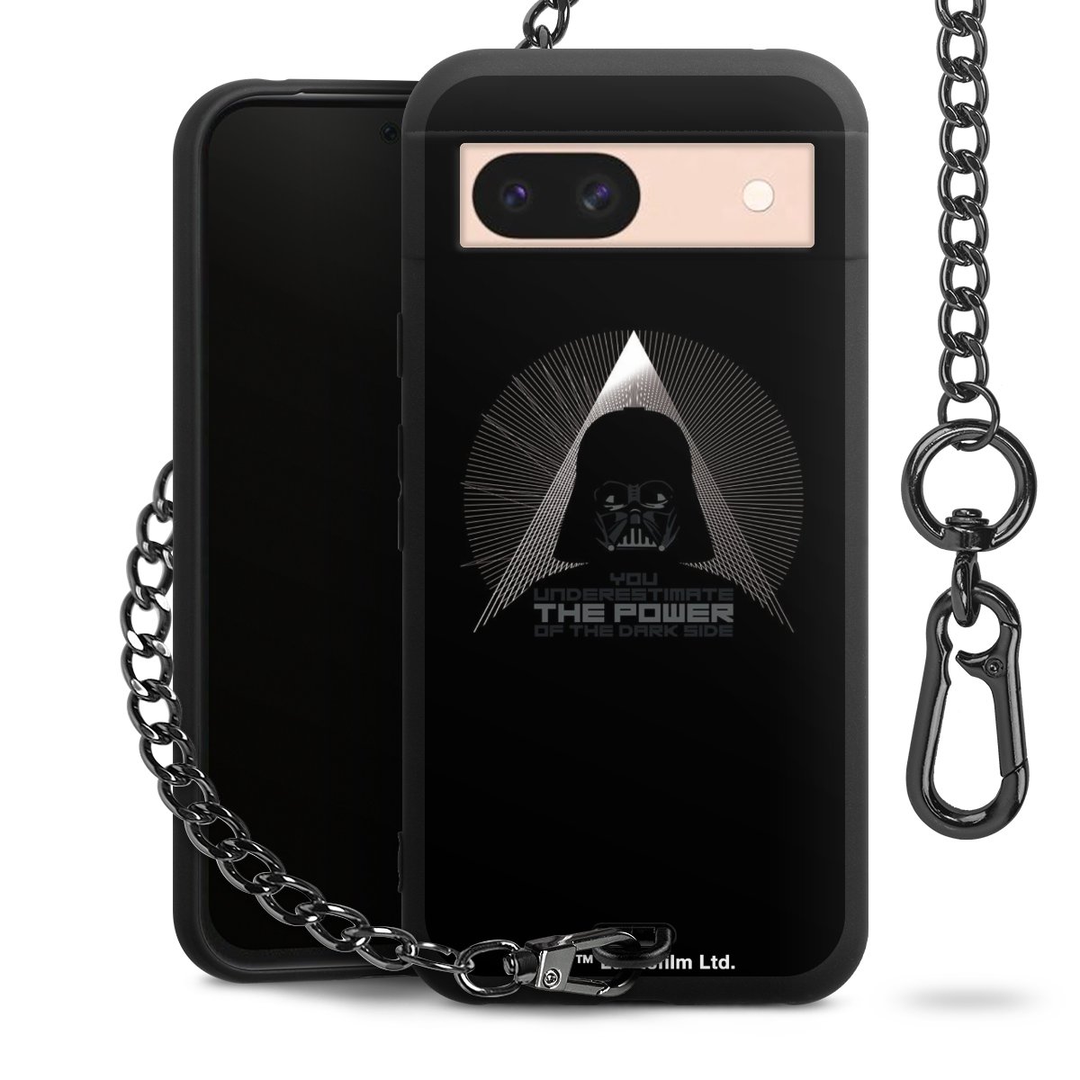 Die mattschwarze Silikon-Handyhülle besteht aus robustem TPU (thermoplastisches Polyurethan). Sie ist flexibel und schützt Dein Smartphone vor Stößen und Kratzern. Die Kette sowie der Karabinerhaken sind aus Metall in Gunmetal-Optik gefertigt. Für dieses Produkt kommen ausschließlich TÜV-geprüfte Materialien zum Einsatz.