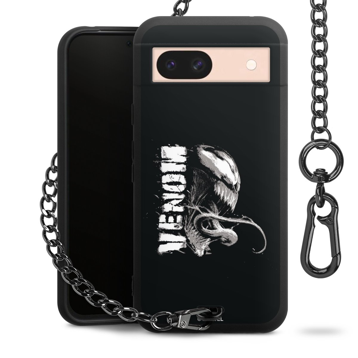 Die mattschwarze Silikon-Handyhülle besteht aus robustem TPU (thermoplastisches Polyurethan). Sie ist flexibel und schützt Dein Smartphone vor Stößen und Kratzern. Die Kette sowie der Karabinerhaken sind aus Metall in Gunmetal-Optik gefertigt. Für dieses Produkt kommen ausschließlich TÜV-geprüfte Materialien zum Einsatz.