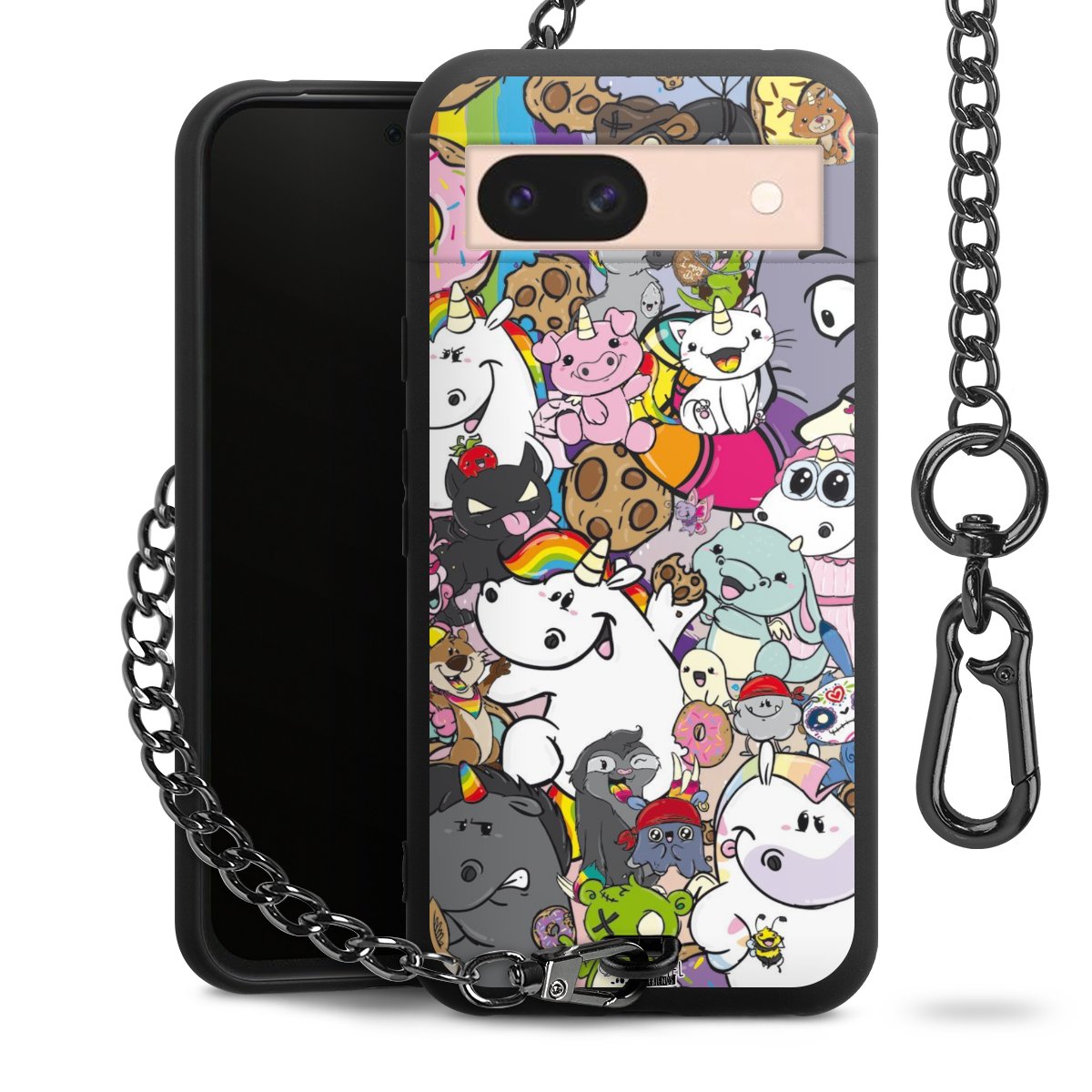 Die mattschwarze Silikon-Handyhülle besteht aus robustem TPU (thermoplastisches Polyurethan). Sie ist flexibel und schützt Dein Smartphone vor Stößen und Kratzern. Die Kette sowie der Karabinerhaken sind aus Metall in Gunmetal-Optik gefertigt. Für dieses Produkt kommen ausschließlich TÜV-geprüfte Materialien zum Einsatz.