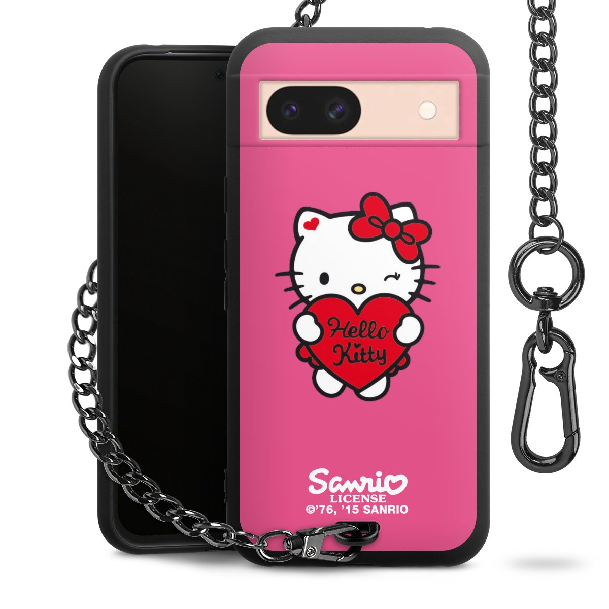Die mattschwarze Silikon-Handyhülle besteht aus robustem TPU (thermoplastisches Polyurethan). Sie ist flexibel und schützt Dein Smartphone vor Stößen und Kratzern. Die Kette sowie der Karabinerhaken sind aus Metall in Gunmetal-Optik gefertigt. Für dieses Produkt kommen ausschließlich TÜV-geprüfte Materialien zum Einsatz.