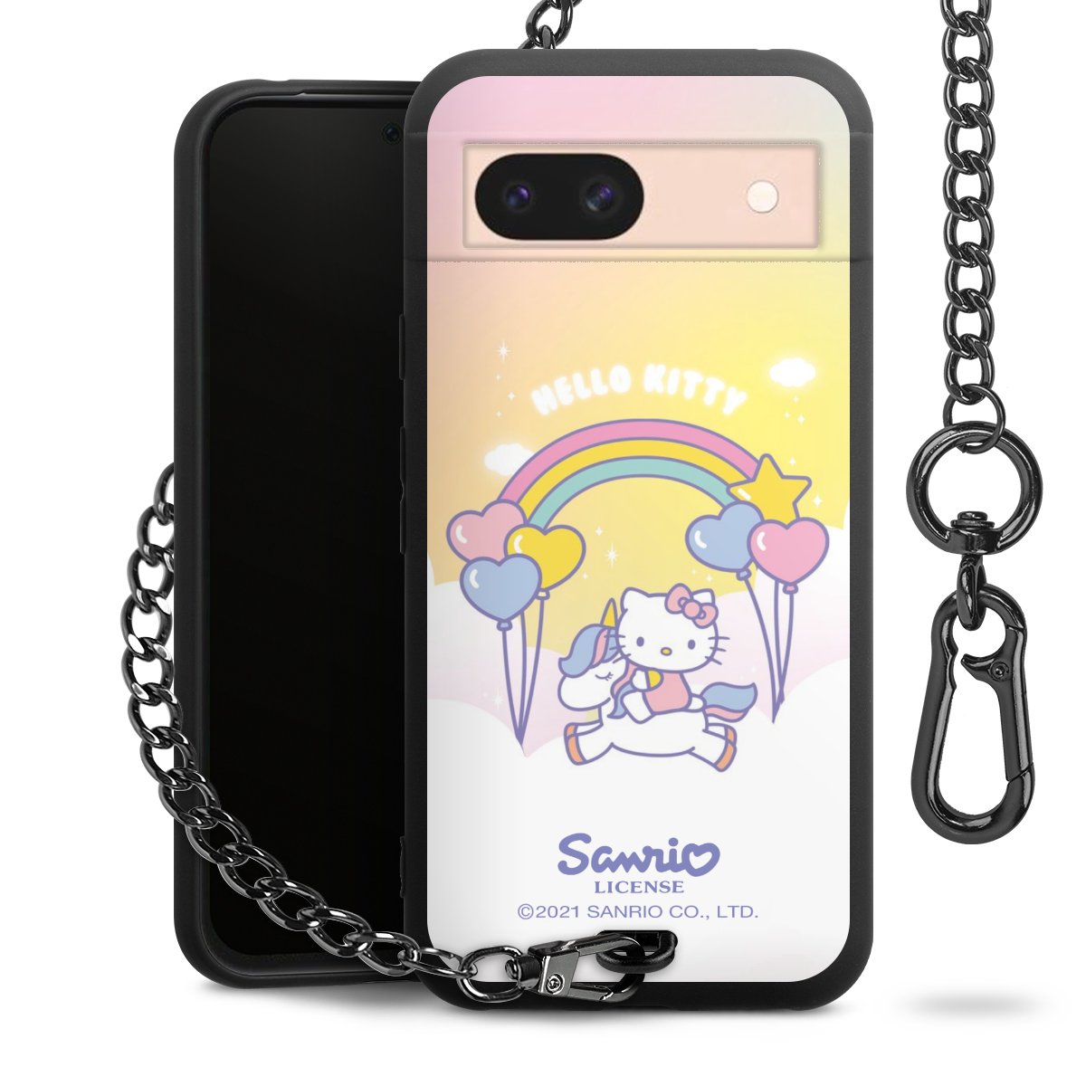 Die mattschwarze Silikon-Handyhülle besteht aus robustem TPU (thermoplastisches Polyurethan). Sie ist flexibel und schützt Dein Smartphone vor Stößen und Kratzern. Die Kette sowie der Karabinerhaken sind aus Metall in Gunmetal-Optik gefertigt. Für dieses Produkt kommen ausschließlich TÜV-geprüfte Materialien zum Einsatz.