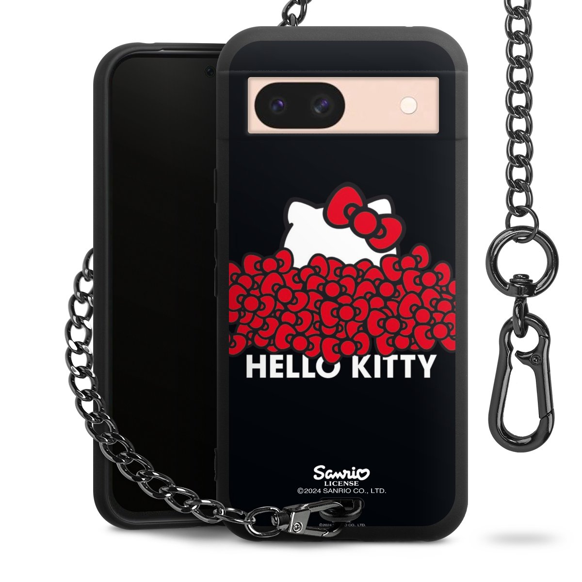 Die mattschwarze Silikon-Handyhülle besteht aus robustem TPU (thermoplastisches Polyurethan). Sie ist flexibel und schützt Dein Smartphone vor Stößen und Kratzern. Die Kette sowie der Karabinerhaken sind aus Metall in Gunmetal-Optik gefertigt. Für dieses Produkt kommen ausschließlich TÜV-geprüfte Materialien zum Einsatz.
