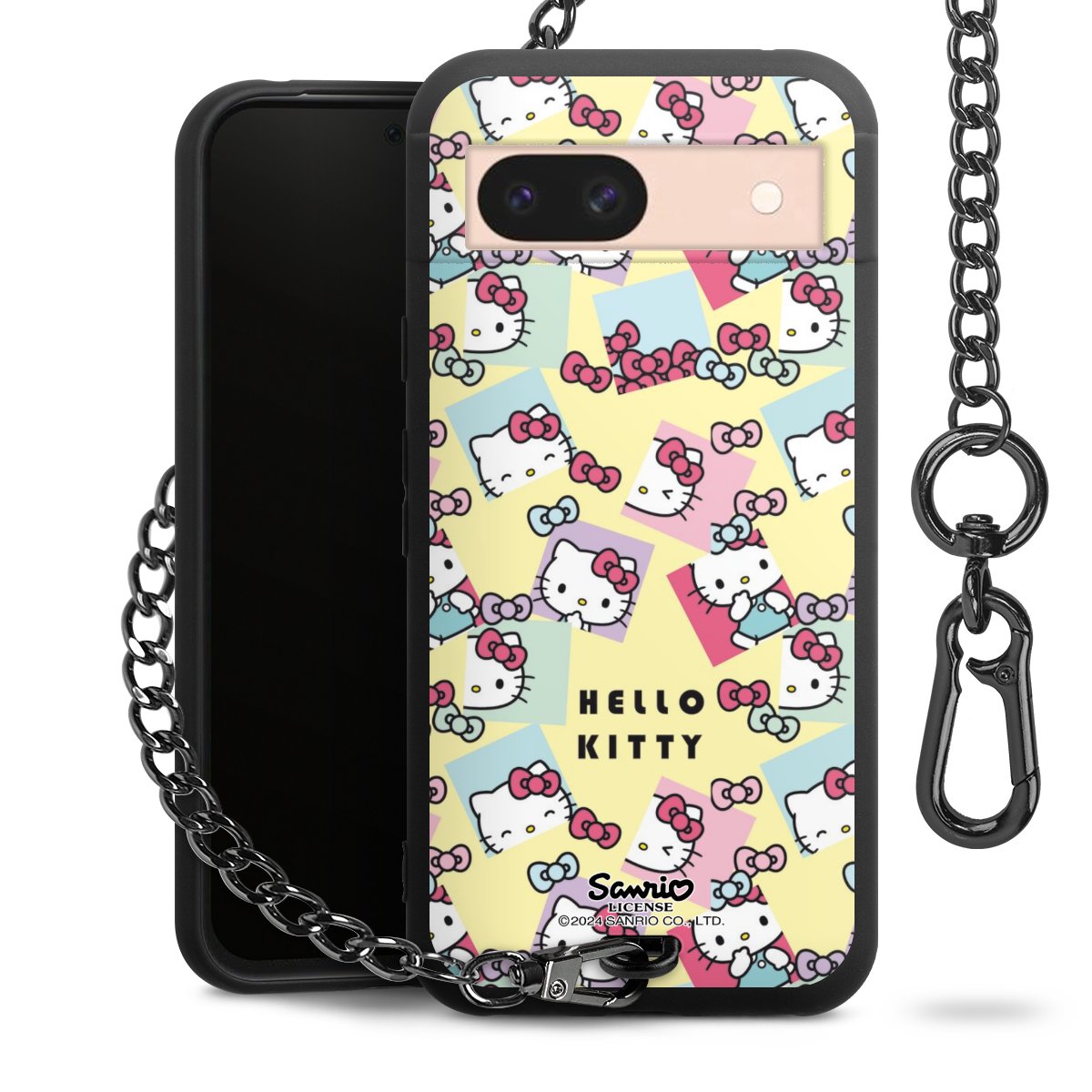 Die mattschwarze Silikon-Handyhülle besteht aus robustem TPU (thermoplastisches Polyurethan). Sie ist flexibel und schützt Dein Smartphone vor Stößen und Kratzern. Die Kette sowie der Karabinerhaken sind aus Metall in Gunmetal-Optik gefertigt. Für dieses Produkt kommen ausschließlich TÜV-geprüfte Materialien zum Einsatz.