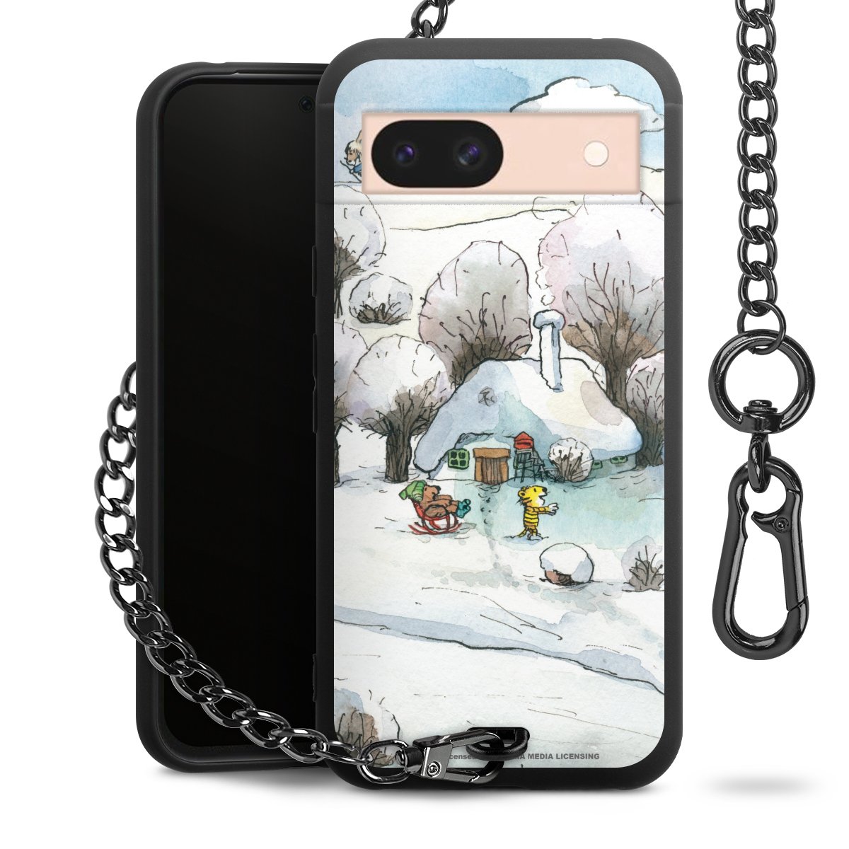 Die mattschwarze Silikon-Handyhülle besteht aus robustem TPU (thermoplastisches Polyurethan). Sie ist flexibel und schützt Dein Smartphone vor Stößen und Kratzern. Die Kette sowie der Karabinerhaken sind aus Metall in Gunmetal-Optik gefertigt. Für dieses Produkt kommen ausschließlich TÜV-geprüfte Materialien zum Einsatz.