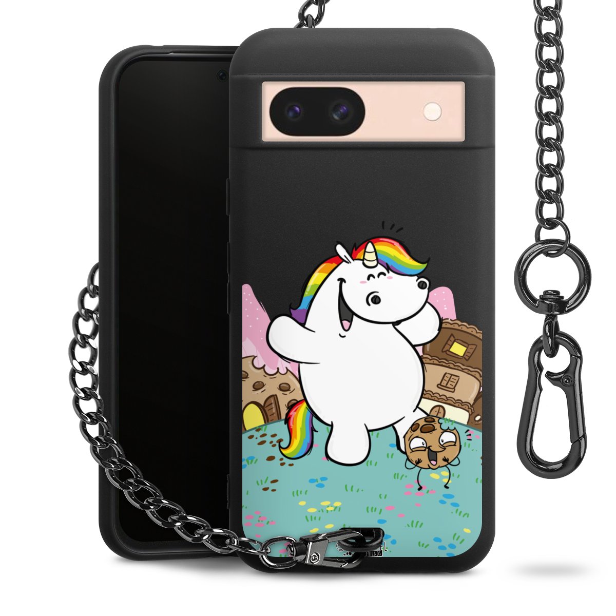 Die mattschwarze Silikon-Handyhülle besteht aus robustem TPU (thermoplastisches Polyurethan). Sie ist flexibel und schützt Dein Smartphone vor Stößen und Kratzern. Die Kette sowie der Karabinerhaken sind aus Metall in Gunmetal-Optik gefertigt. Für dieses Produkt kommen ausschließlich TÜV-geprüfte Materialien zum Einsatz.