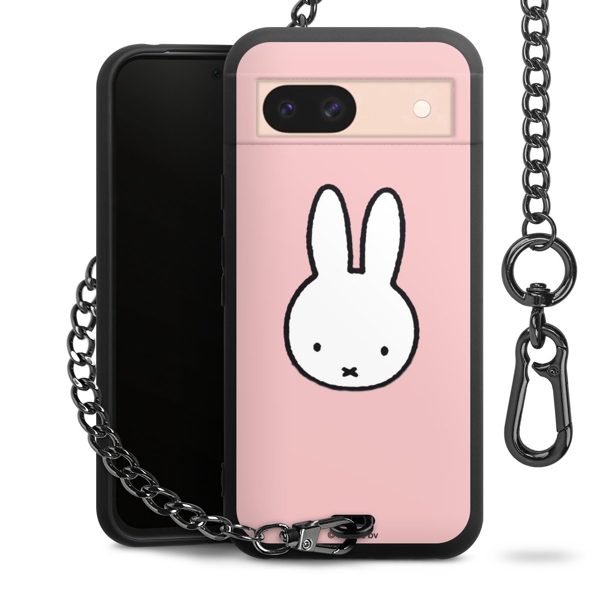 Die mattschwarze Silikon-Handyhülle besteht aus robustem TPU (thermoplastisches Polyurethan). Sie ist flexibel und schützt Dein Smartphone vor Stößen und Kratzern. Die Kette sowie der Karabinerhaken sind aus Metall in Gunmetal-Optik gefertigt. Für dieses Produkt kommen ausschließlich TÜV-geprüfte Materialien zum Einsatz.
