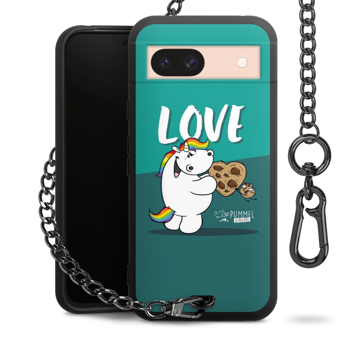 Die mattschwarze Silikon-Handyhülle besteht aus robustem TPU (thermoplastisches Polyurethan). Sie ist flexibel und schützt Dein Smartphone vor Stößen und Kratzern. Die Kette sowie der Karabinerhaken sind aus Metall in Gunmetal-Optik gefertigt. Für dieses Produkt kommen ausschließlich TÜV-geprüfte Materialien zum Einsatz.