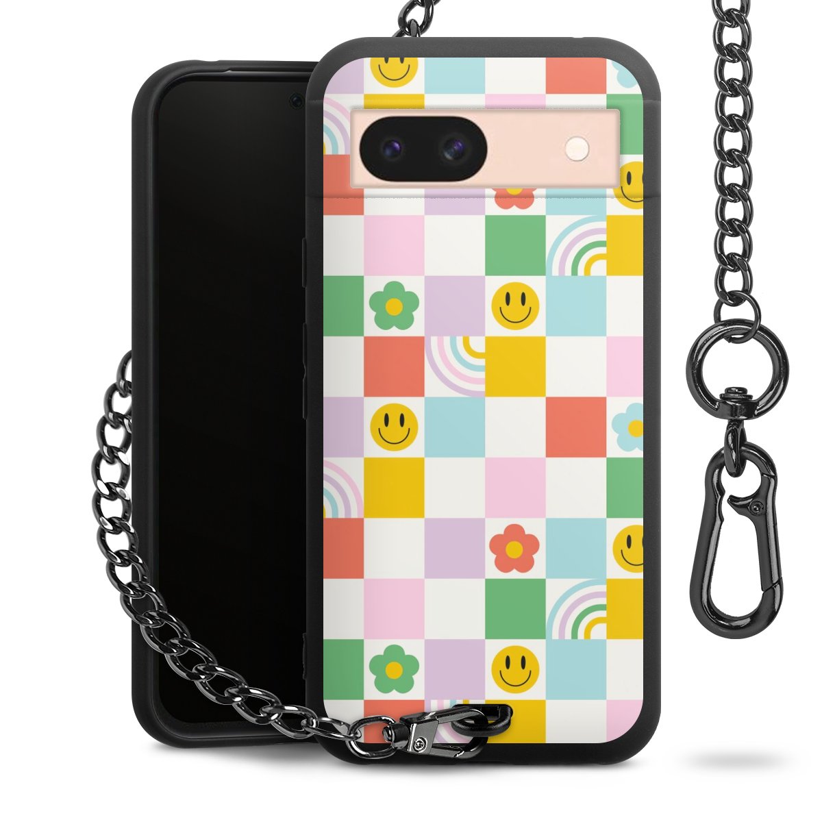 Die mattschwarze Silikon-Handyhülle besteht aus robustem TPU (thermoplastisches Polyurethan). Sie ist flexibel und schützt Dein Smartphone vor Stößen und Kratzern. Die Kette sowie der Karabinerhaken sind aus Metall in Gunmetal-Optik gefertigt. Für dieses Produkt kommen ausschließlich TÜV-geprüfte Materialien zum Einsatz.