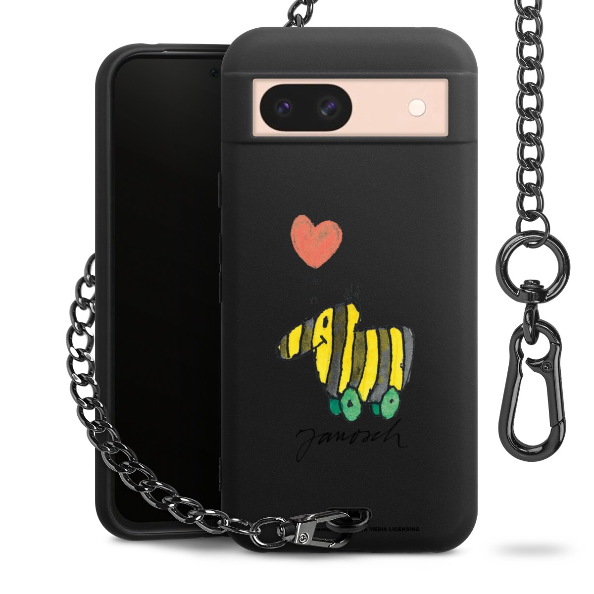 Die mattschwarze Silikon-Handyhülle besteht aus robustem TPU (thermoplastisches Polyurethan). Sie ist flexibel und schützt Dein Smartphone vor Stößen und Kratzern. Die Kette sowie der Karabinerhaken sind aus Metall in Gunmetal-Optik gefertigt. Für dieses Produkt kommen ausschließlich TÜV-geprüfte Materialien zum Einsatz.