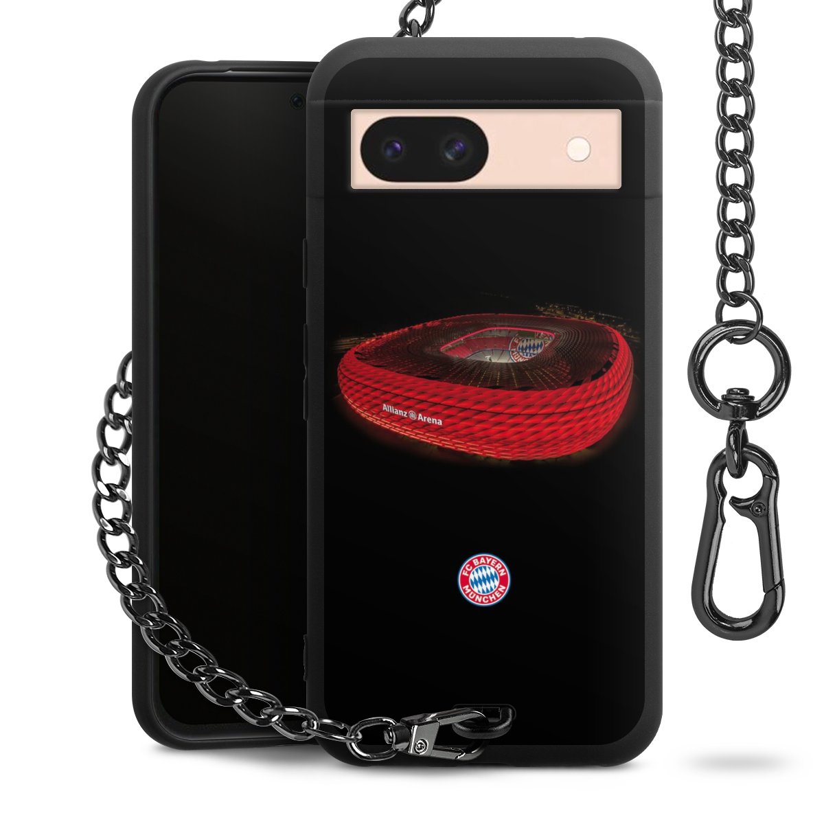 • Mattschwarze Handyhülle mit Metallkette