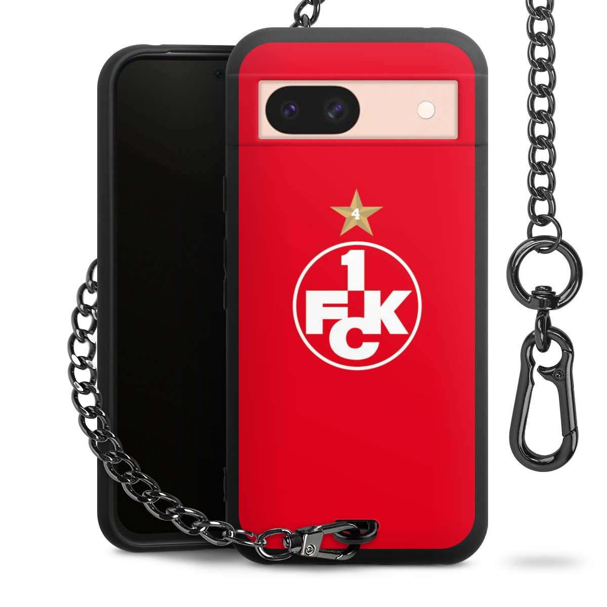 Die Handyhülle verfügt über eine mittig am unteren Rand platzierte Öse, an der die Metallkette stabil befestigt ist. Bestelle die Hülle einfach für Dein Smartphone-Modell, dann passt sie wie angegossen und Du brauchst sie bloß einmal anzudrücken. Handy in die Tasche, Karabiner an den Hosenbund – schon kann die Party starten.