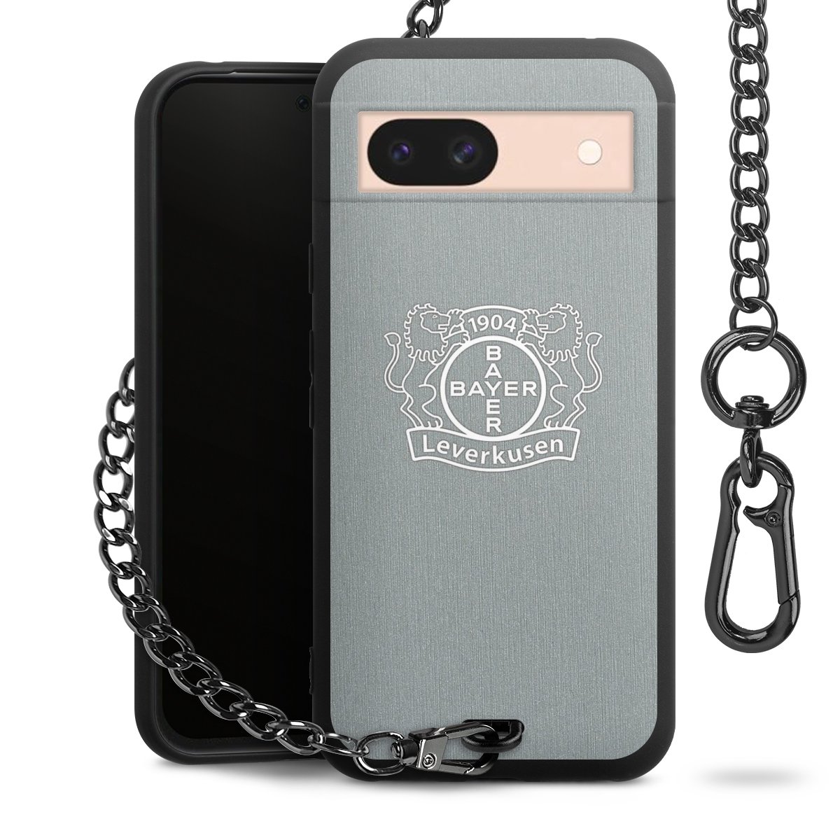 Die mattschwarze Silikon-Handyhülle besteht aus robustem TPU (thermoplastisches Polyurethan). Sie ist flexibel und schützt Dein Smartphone vor Stößen und Kratzern. Die Kette sowie der Karabinerhaken sind aus Metall in Gunmetal-Optik gefertigt. Für dieses Produkt kommen ausschließlich TÜV-geprüfte Materialien zum Einsatz.
