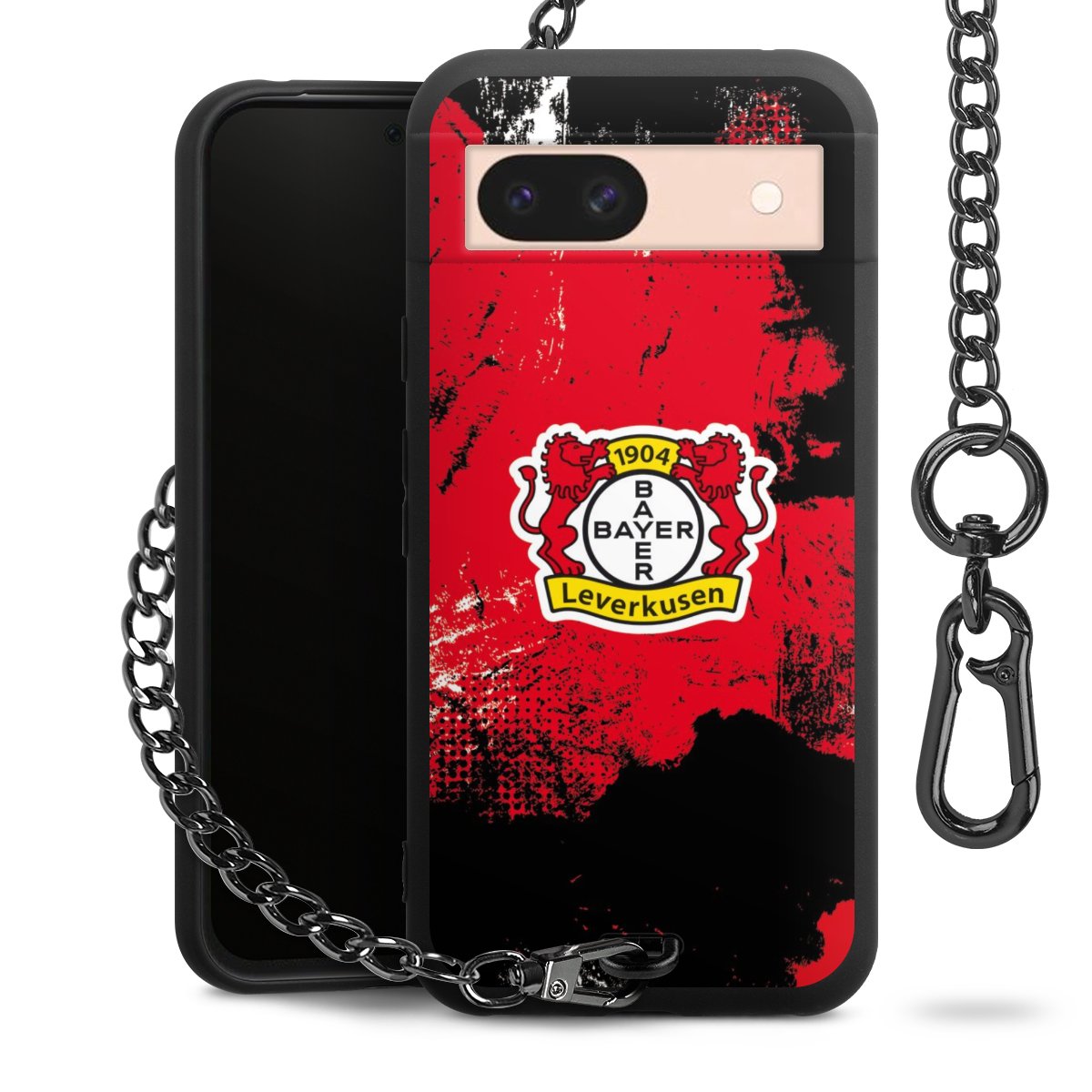 Die mattschwarze Silikon-Handyhülle besteht aus robustem TPU (thermoplastisches Polyurethan). Sie ist flexibel und schützt Dein Smartphone vor Stößen und Kratzern. Die Kette sowie der Karabinerhaken sind aus Metall in Gunmetal-Optik gefertigt. Für dieses Produkt kommen ausschließlich TÜV-geprüfte Materialien zum Einsatz.