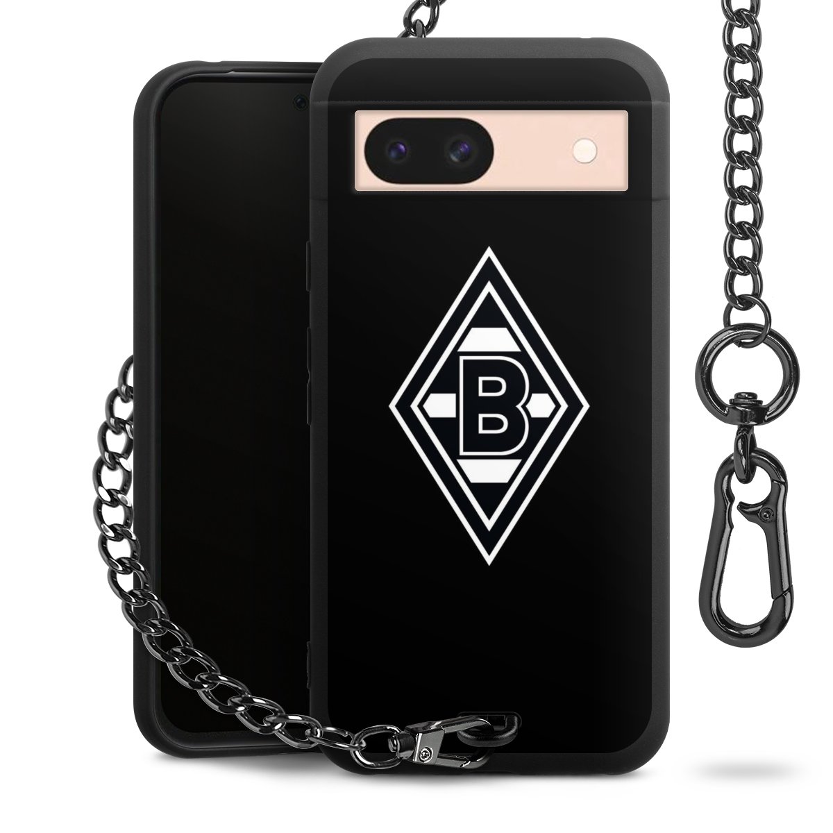 Die mattschwarze Silikon-Handyhülle besteht aus robustem TPU (thermoplastisches Polyurethan). Sie ist flexibel und schützt Dein Smartphone vor Stößen und Kratzern. Die Kette sowie der Karabinerhaken sind aus Metall in Gunmetal-Optik gefertigt. Für dieses Produkt kommen ausschließlich TÜV-geprüfte Materialien zum Einsatz.
