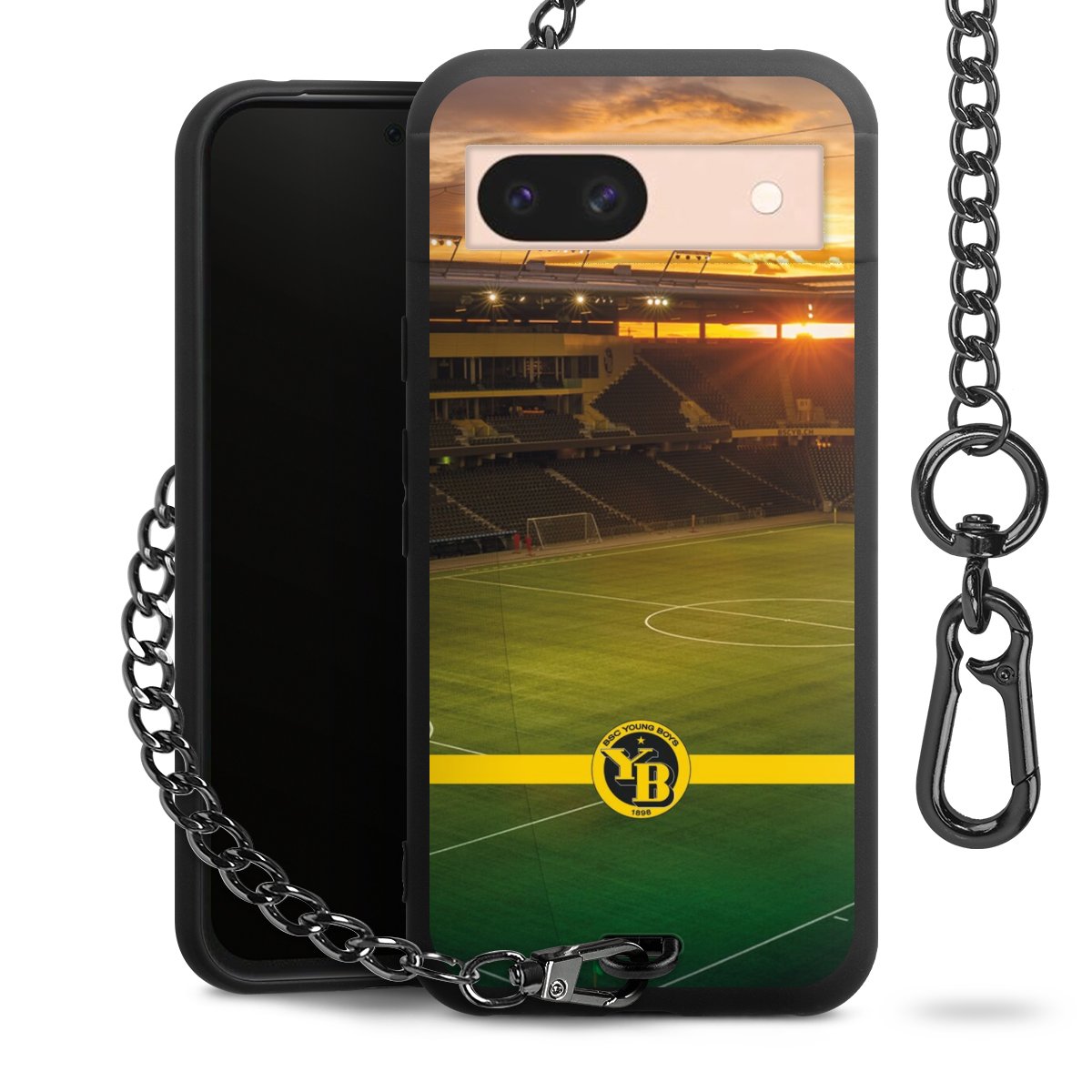 Die mattschwarze Silikon-Handyhülle besteht aus robustem TPU (thermoplastisches Polyurethan). Sie ist flexibel und schützt Dein Smartphone vor Stößen und Kratzern. Die Kette sowie der Karabinerhaken sind aus Metall in Gunmetal-Optik gefertigt. Für dieses Produkt kommen ausschließlich TÜV-geprüfte Materialien zum Einsatz.