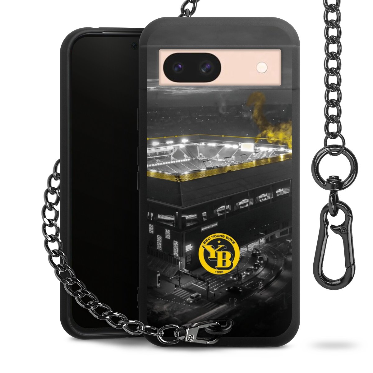 Die mattschwarze Silikon-Handyhülle besteht aus robustem TPU (thermoplastisches Polyurethan). Sie ist flexibel und schützt Dein Smartphone vor Stößen und Kratzern. Die Kette sowie der Karabinerhaken sind aus Metall in Gunmetal-Optik gefertigt. Für dieses Produkt kommen ausschließlich TÜV-geprüfte Materialien zum Einsatz.