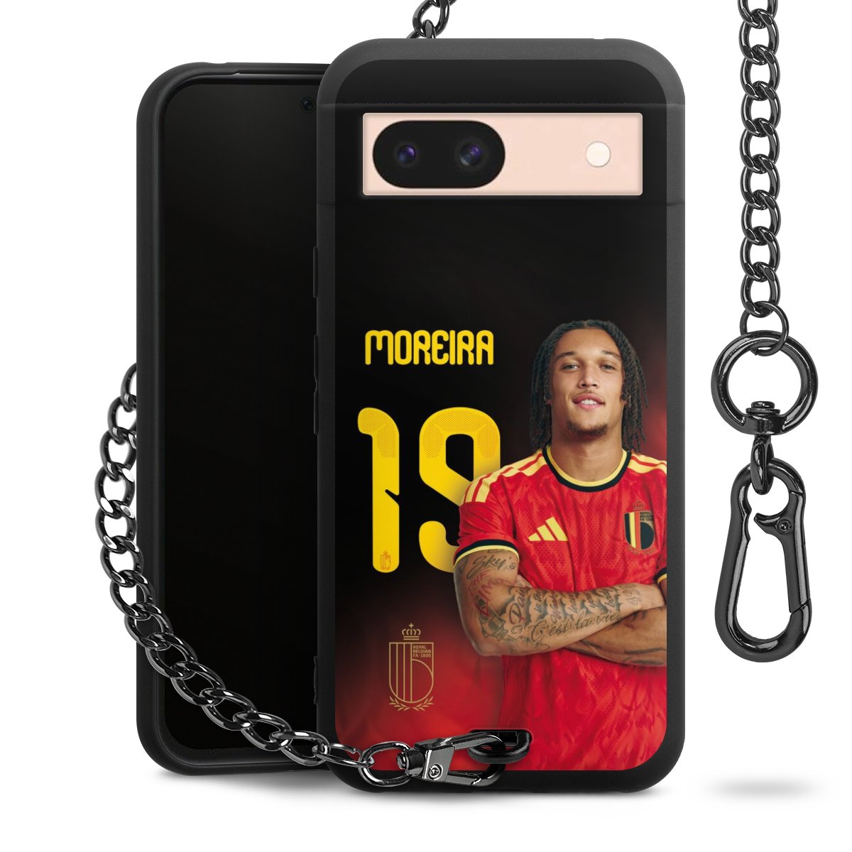 Die mattschwarze Silikon-Handyhülle besteht aus robustem TPU (thermoplastisches Polyurethan). Sie ist flexibel und schützt Dein Smartphone vor Stößen und Kratzern. Die Kette sowie der Karabinerhaken sind aus Metall in Gunmetal-Optik gefertigt. Für dieses Produkt kommen ausschließlich TÜV-geprüfte Materialien zum Einsatz.