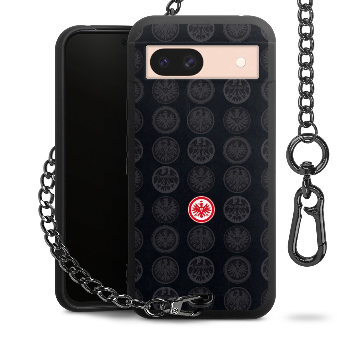 • Mattschwarze Handyhülle mit Metallkette