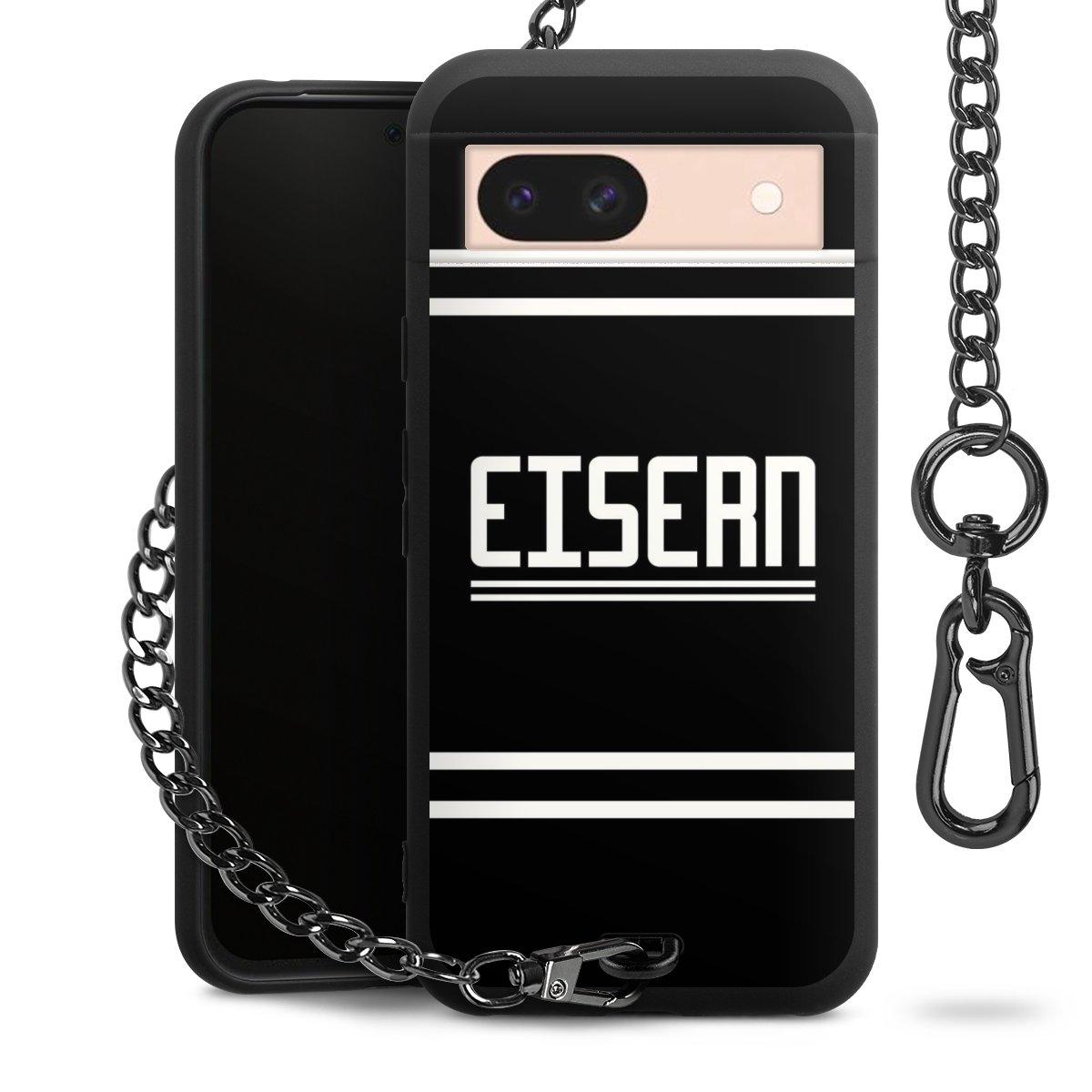 • Mattschwarze Handyhülle mit Metallkette
