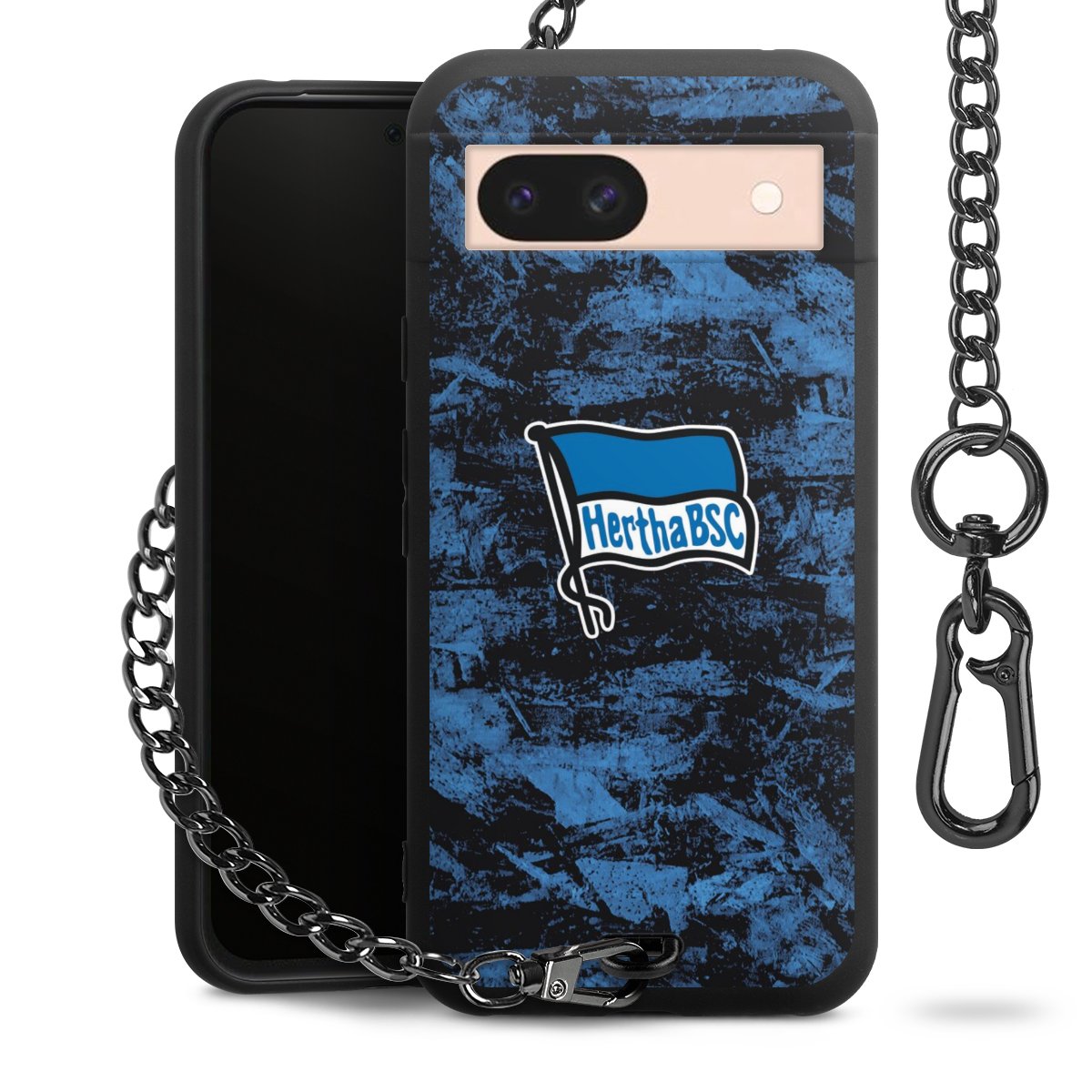 Die mattschwarze Silikon-Handyhülle besteht aus robustem TPU (thermoplastisches Polyurethan). Sie ist flexibel und schützt Dein Smartphone vor Stößen und Kratzern. Die Kette sowie der Karabinerhaken sind aus Metall in Gunmetal-Optik gefertigt. Für dieses Produkt kommen ausschließlich TÜV-geprüfte Materialien zum Einsatz.
