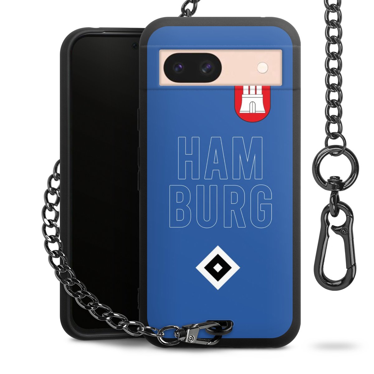 Die mattschwarze Silikon-Handyhülle besteht aus robustem TPU (thermoplastisches Polyurethan). Sie ist flexibel und schützt Dein Smartphone vor Stößen und Kratzern. Die Kette sowie der Karabinerhaken sind aus Metall in Gunmetal-Optik gefertigt. Für dieses Produkt kommen ausschließlich TÜV-geprüfte Materialien zum Einsatz.