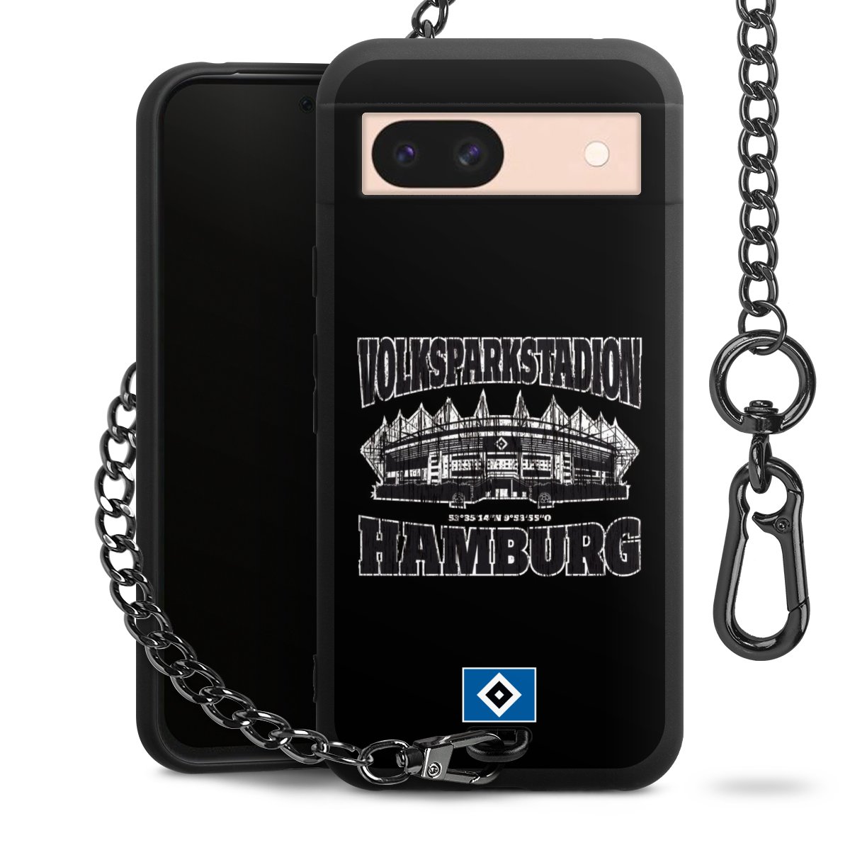 Die mattschwarze Silikon-Handyhülle besteht aus robustem TPU (thermoplastisches Polyurethan). Sie ist flexibel und schützt Dein Smartphone vor Stößen und Kratzern. Die Kette sowie der Karabinerhaken sind aus Metall in Gunmetal-Optik gefertigt. Für dieses Produkt kommen ausschließlich TÜV-geprüfte Materialien zum Einsatz.