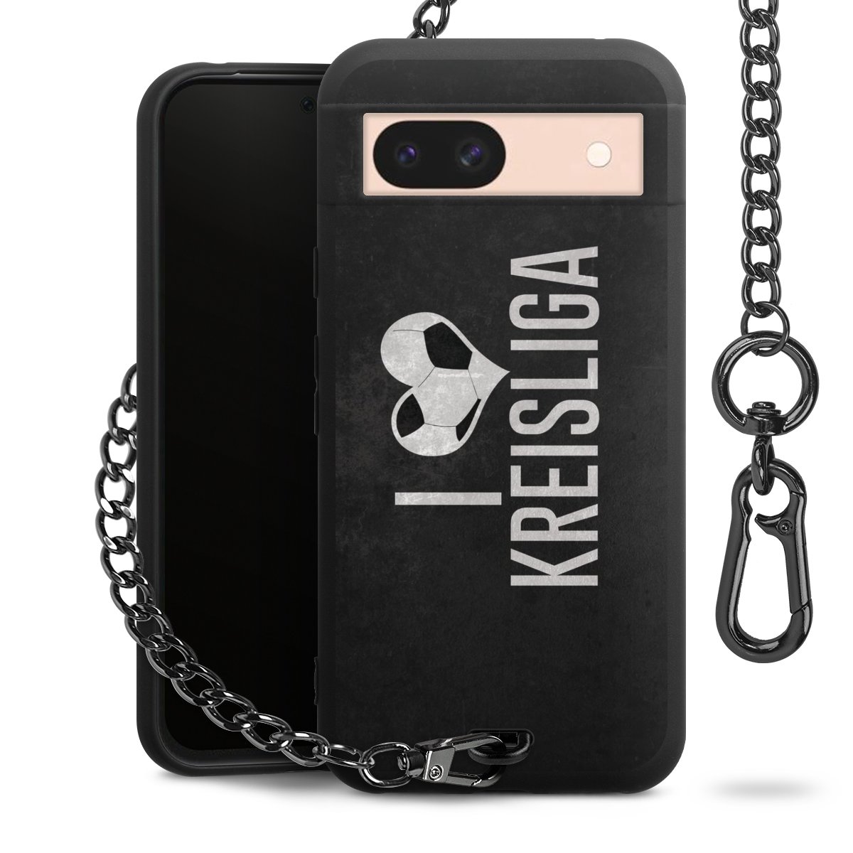 • Mattschwarze Handyhülle mit Metallkette