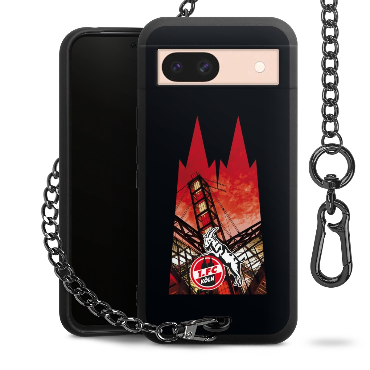Die mattschwarze Silikon-Handyhülle besteht aus robustem TPU (thermoplastisches Polyurethan). Sie ist flexibel und schützt Dein Smartphone vor Stößen und Kratzern. Die Kette sowie der Karabinerhaken sind aus Metall in Gunmetal-Optik gefertigt. Für dieses Produkt kommen ausschließlich TÜV-geprüfte Materialien zum Einsatz.