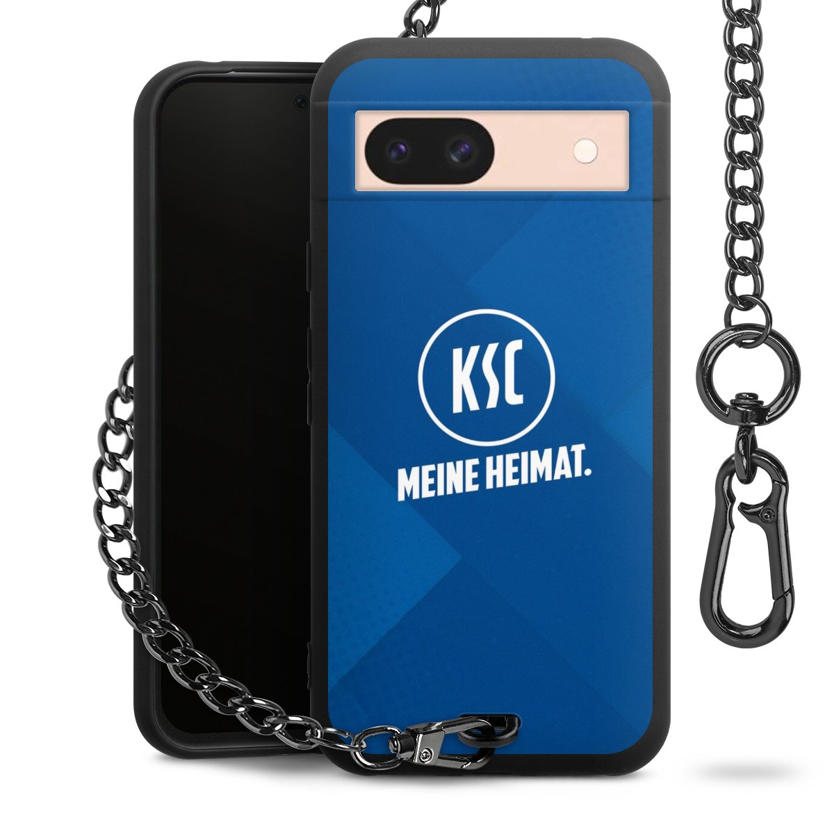 Die mattschwarze Silikon-Handyhülle besteht aus robustem TPU (thermoplastisches Polyurethan). Sie ist flexibel und schützt Dein Smartphone vor Stößen und Kratzern. Die Kette sowie der Karabinerhaken sind aus Metall in Gunmetal-Optik gefertigt. Für dieses Produkt kommen ausschließlich TÜV-geprüfte Materialien zum Einsatz.