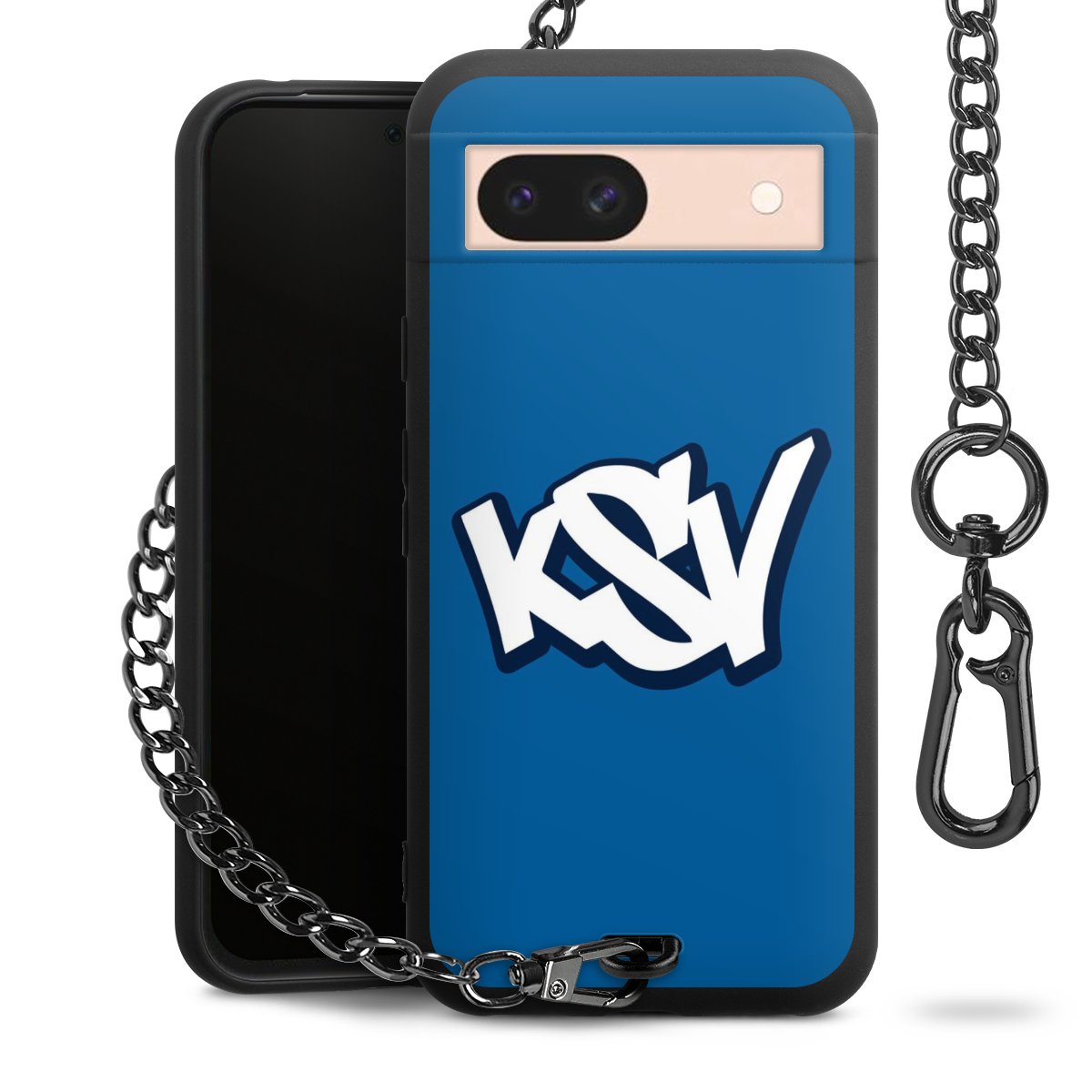 Die mattschwarze Silikon-Handyhülle besteht aus robustem TPU (thermoplastisches Polyurethan). Sie ist flexibel und schützt Dein Smartphone vor Stößen und Kratzern. Die Kette sowie der Karabinerhaken sind aus Metall in Gunmetal-Optik gefertigt. Für dieses Produkt kommen ausschließlich TÜV-geprüfte Materialien zum Einsatz.