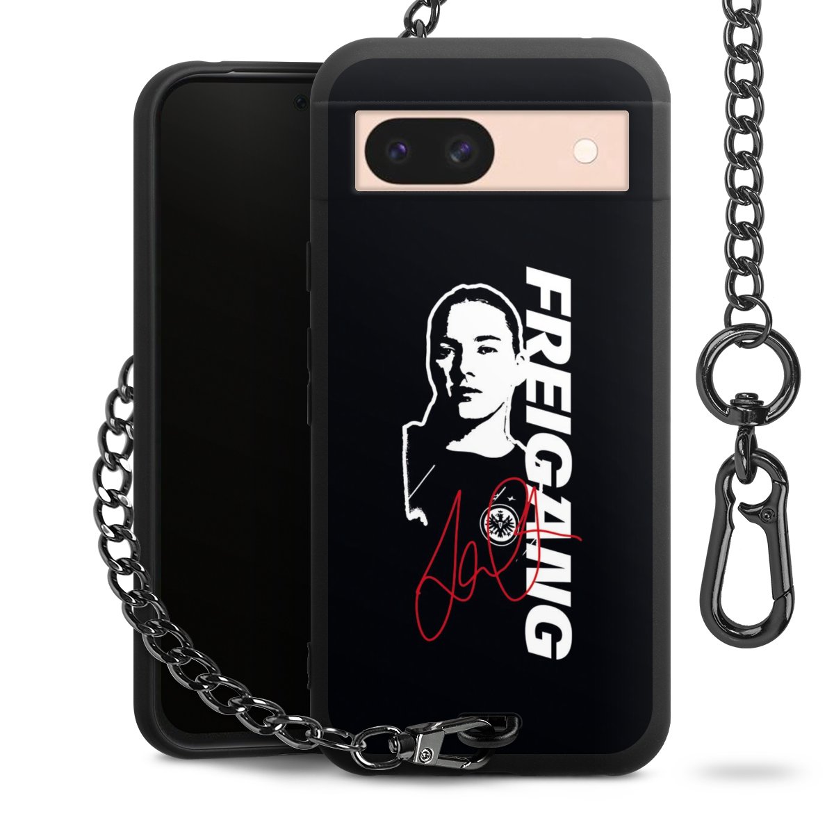 • Mattschwarze Handyhülle mit Metallkette