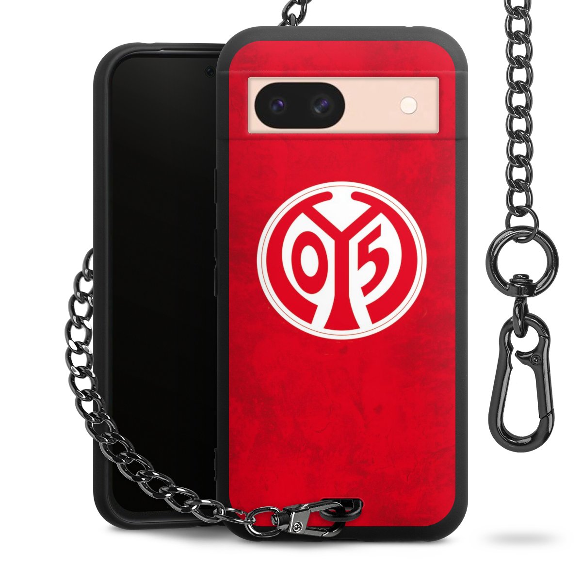 Die mattschwarze Silikon-Handyhülle besteht aus robustem TPU (thermoplastisches Polyurethan). Sie ist flexibel und schützt Dein Smartphone vor Stößen und Kratzern. Die Kette sowie der Karabinerhaken sind aus Metall in Gunmetal-Optik gefertigt. Für dieses Produkt kommen ausschließlich TÜV-geprüfte Materialien zum Einsatz.