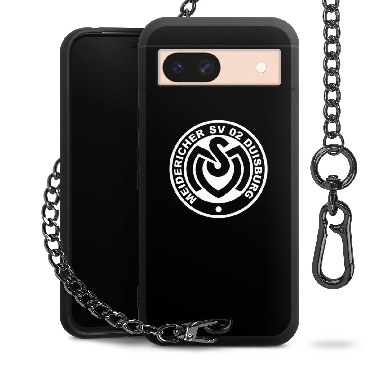 Die mattschwarze Silikon-Handyhülle besteht aus robustem TPU (thermoplastisches Polyurethan). Sie ist flexibel und schützt Dein Smartphone vor Stößen und Kratzern. Die Kette sowie der Karabinerhaken sind aus Metall in Gunmetal-Optik gefertigt. Für dieses Produkt kommen ausschließlich TÜV-geprüfte Materialien zum Einsatz.