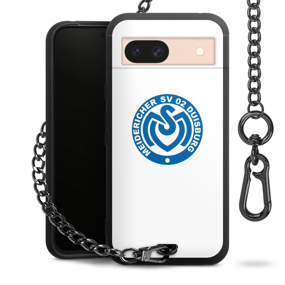 Die mattschwarze Silikon-Handyhülle besteht aus robustem TPU (thermoplastisches Polyurethan). Sie ist flexibel und schützt Dein Smartphone vor Stößen und Kratzern. Die Kette sowie der Karabinerhaken sind aus Metall in Gunmetal-Optik gefertigt. Für dieses Produkt kommen ausschließlich TÜV-geprüfte Materialien zum Einsatz.