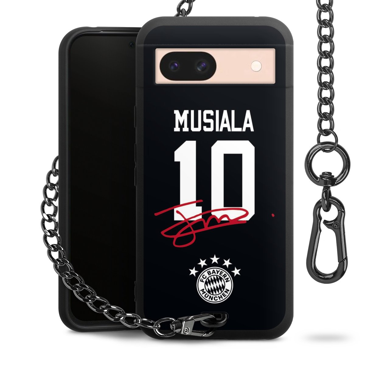 Die mattschwarze Silikon-Handyhülle besteht aus robustem TPU (thermoplastisches Polyurethan). Sie ist flexibel und schützt Dein Smartphone vor Stößen und Kratzern. Die Kette sowie der Karabinerhaken sind aus Metall in Gunmetal-Optik gefertigt. Für dieses Produkt kommen ausschließlich TÜV-geprüfte Materialien zum Einsatz.