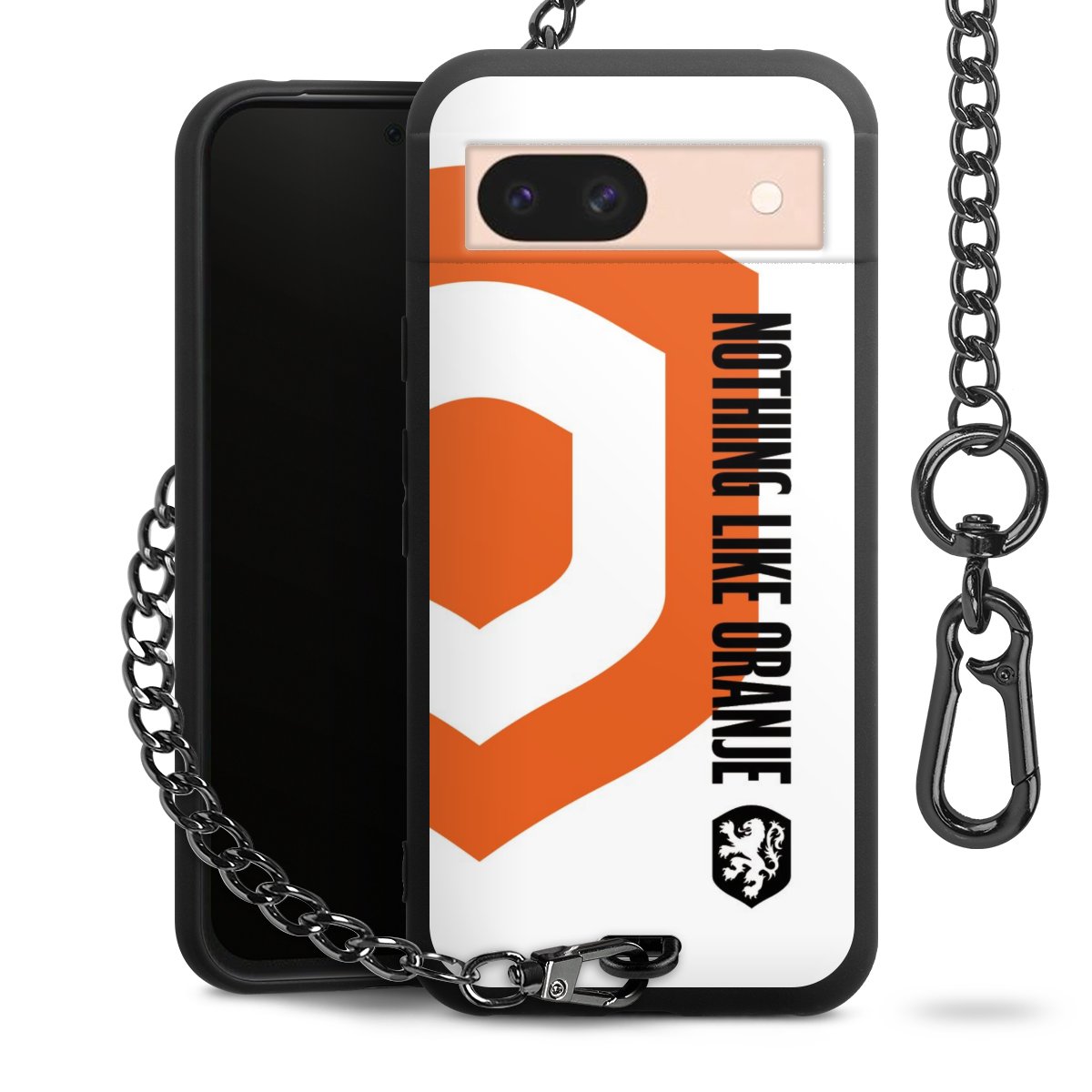 Die mattschwarze Silikon-Handyhülle besteht aus robustem TPU (thermoplastisches Polyurethan). Sie ist flexibel und schützt Dein Smartphone vor Stößen und Kratzern. Die Kette sowie der Karabinerhaken sind aus Metall in Gunmetal-Optik gefertigt. Für dieses Produkt kommen ausschließlich TÜV-geprüfte Materialien zum Einsatz.