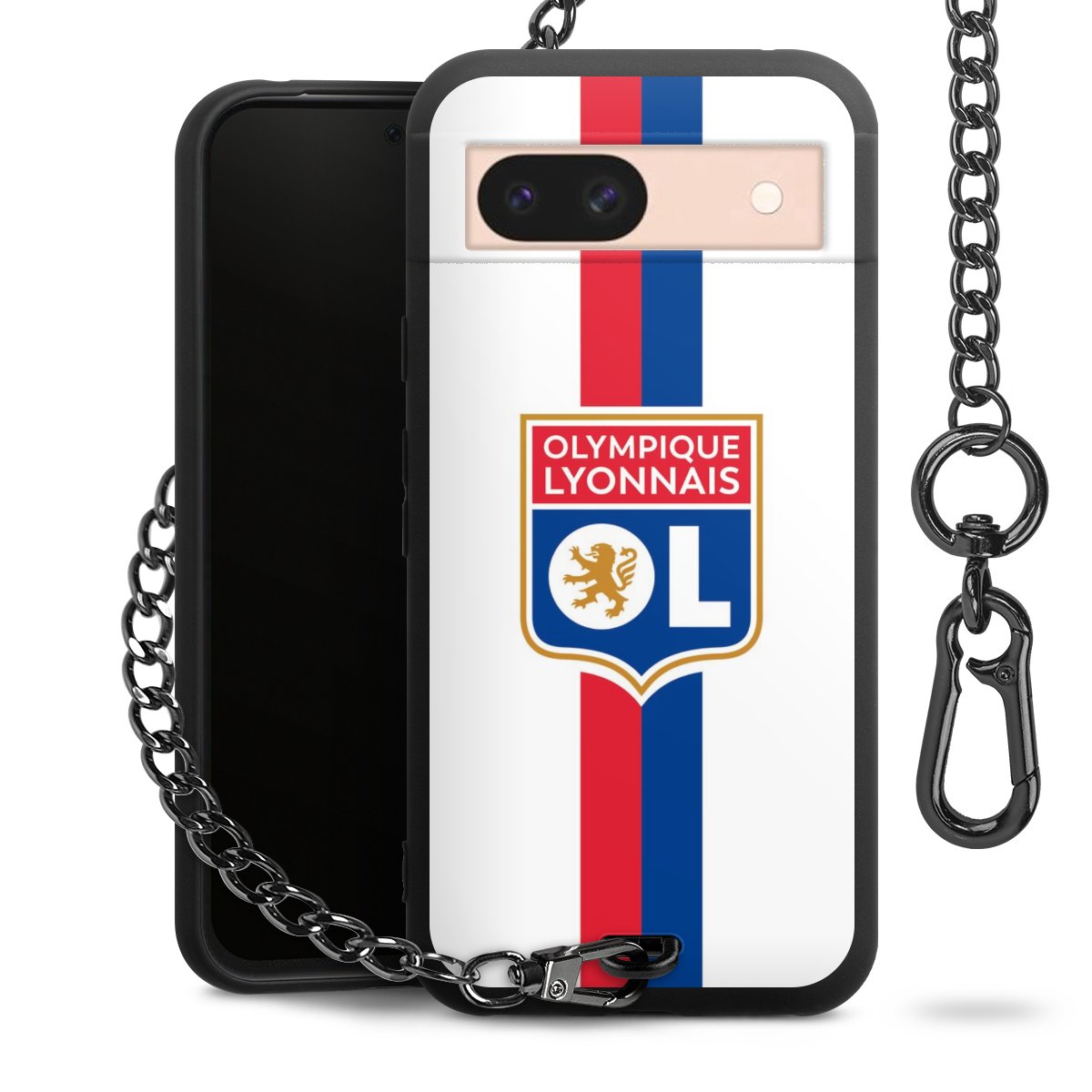 Die mattschwarze Silikon-Handyhülle besteht aus robustem TPU (thermoplastisches Polyurethan). Sie ist flexibel und schützt Dein Smartphone vor Stößen und Kratzern. Die Kette sowie der Karabinerhaken sind aus Metall in Gunmetal-Optik gefertigt. Für dieses Produkt kommen ausschließlich TÜV-geprüfte Materialien zum Einsatz.